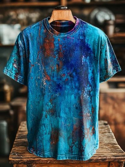 Unisex Vintage Blue Abstract Art Print Casual Loose T-Shirt