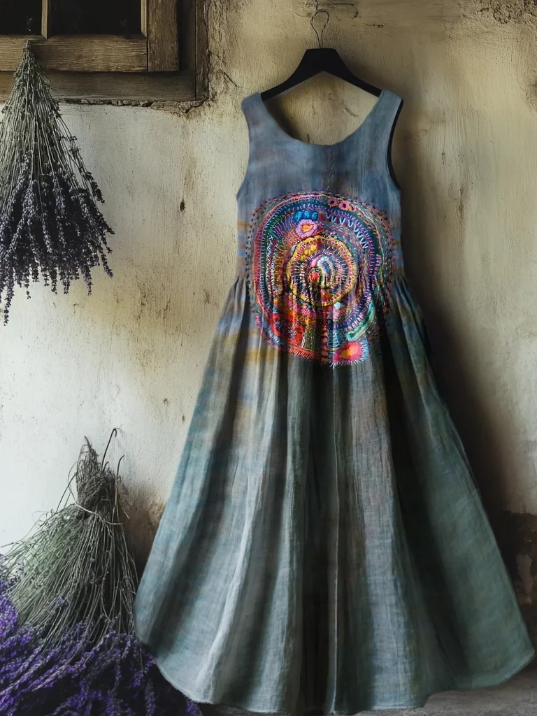 Unisex Vintage Line Embroidery Printed Casual Loose Short Sleeve T-Shirt