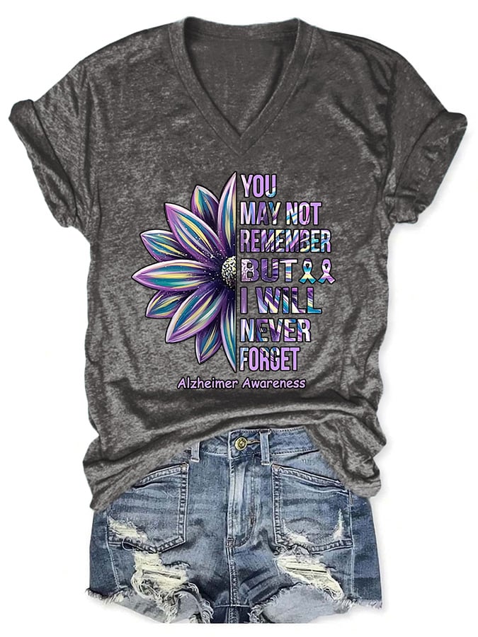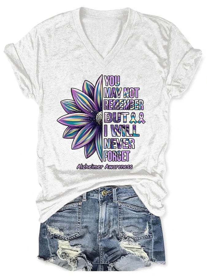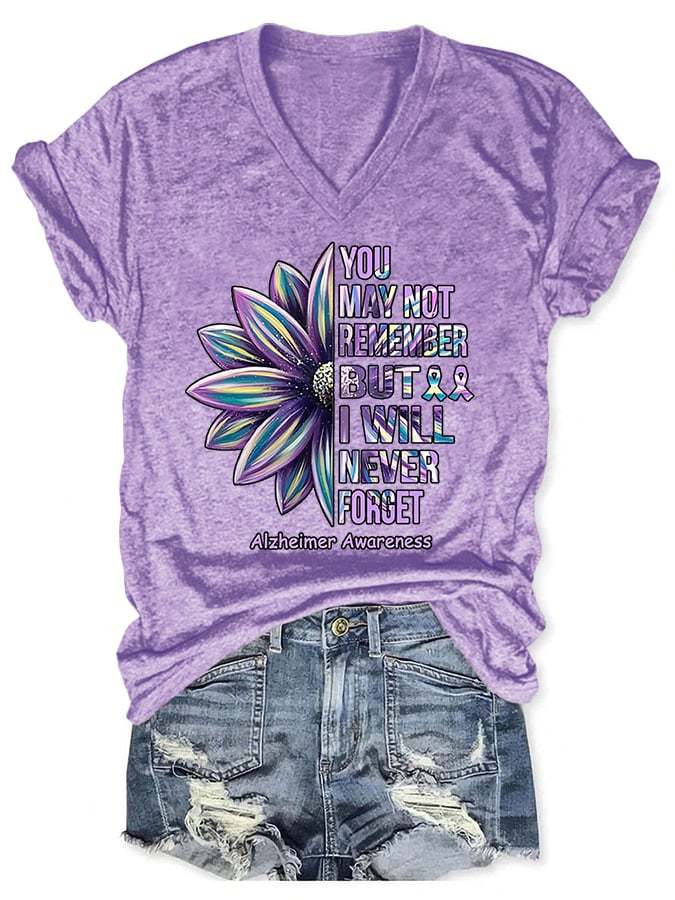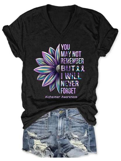 V-neck Retro Alzheimer's Awareness You May Not Remember But I Will Never Forget T-Shirt