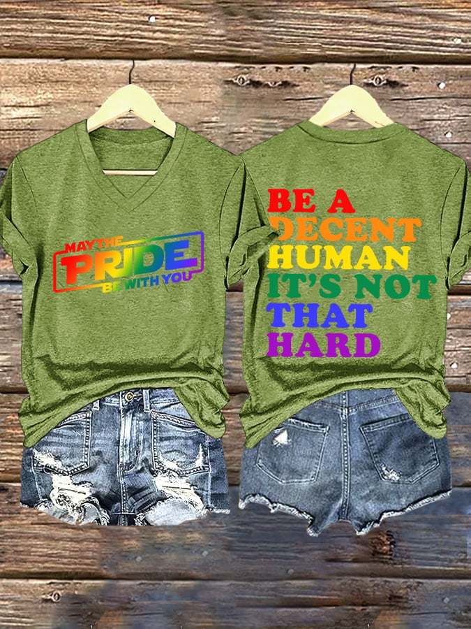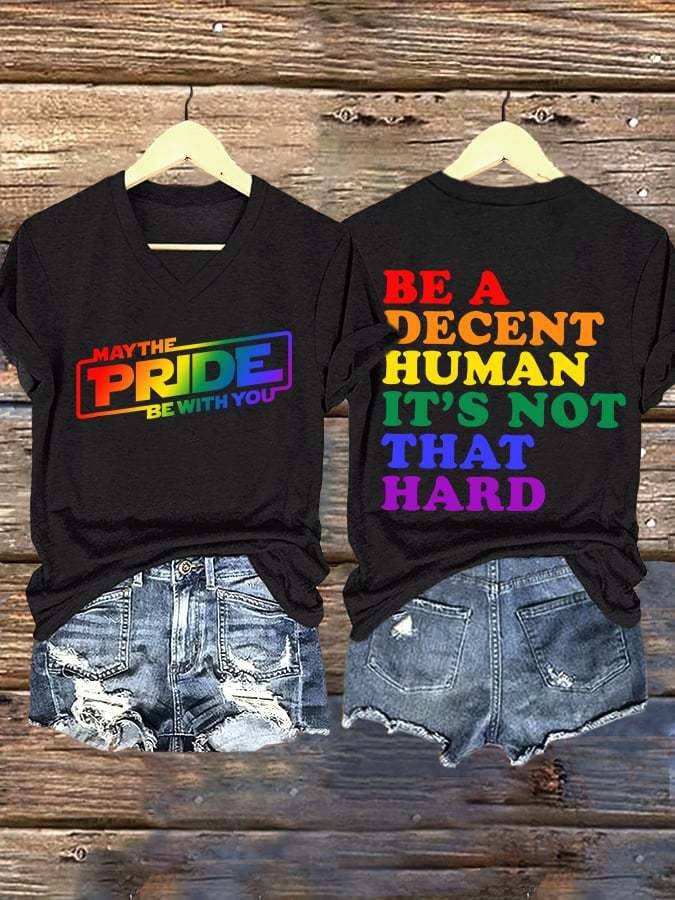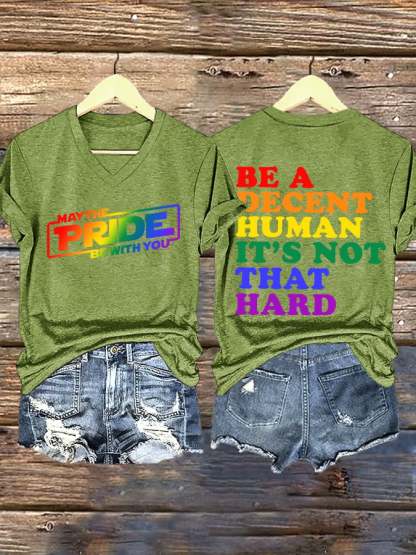 V-Neck Retro Be A Decent Human It's Not That Hard May The Pride Be With You Print T-Shirt