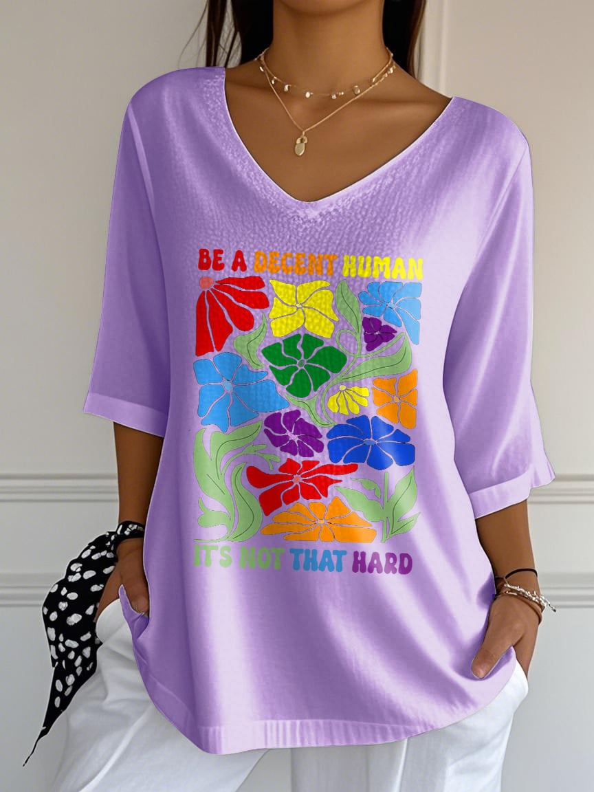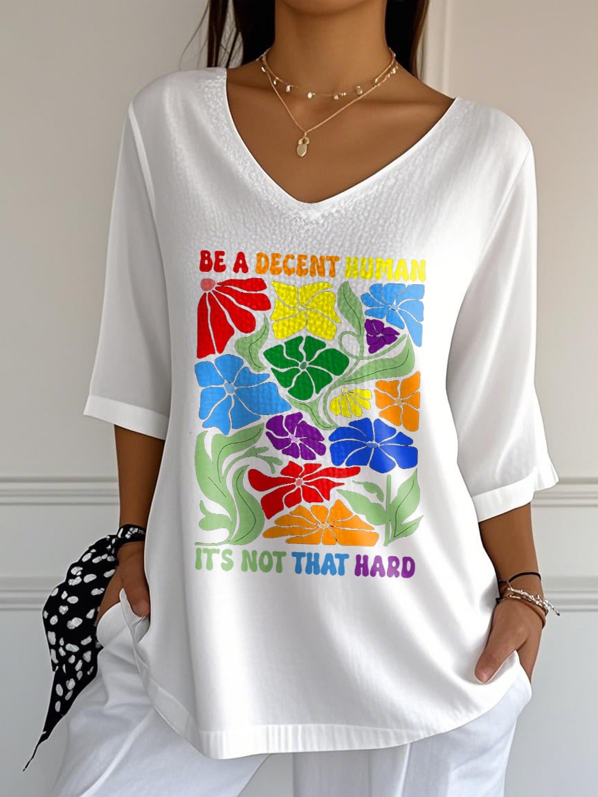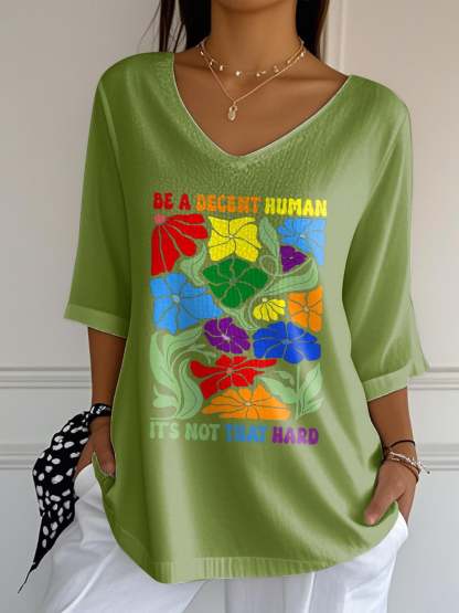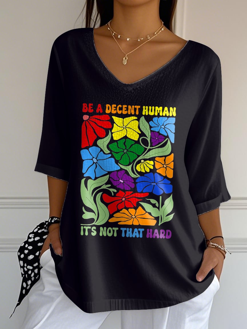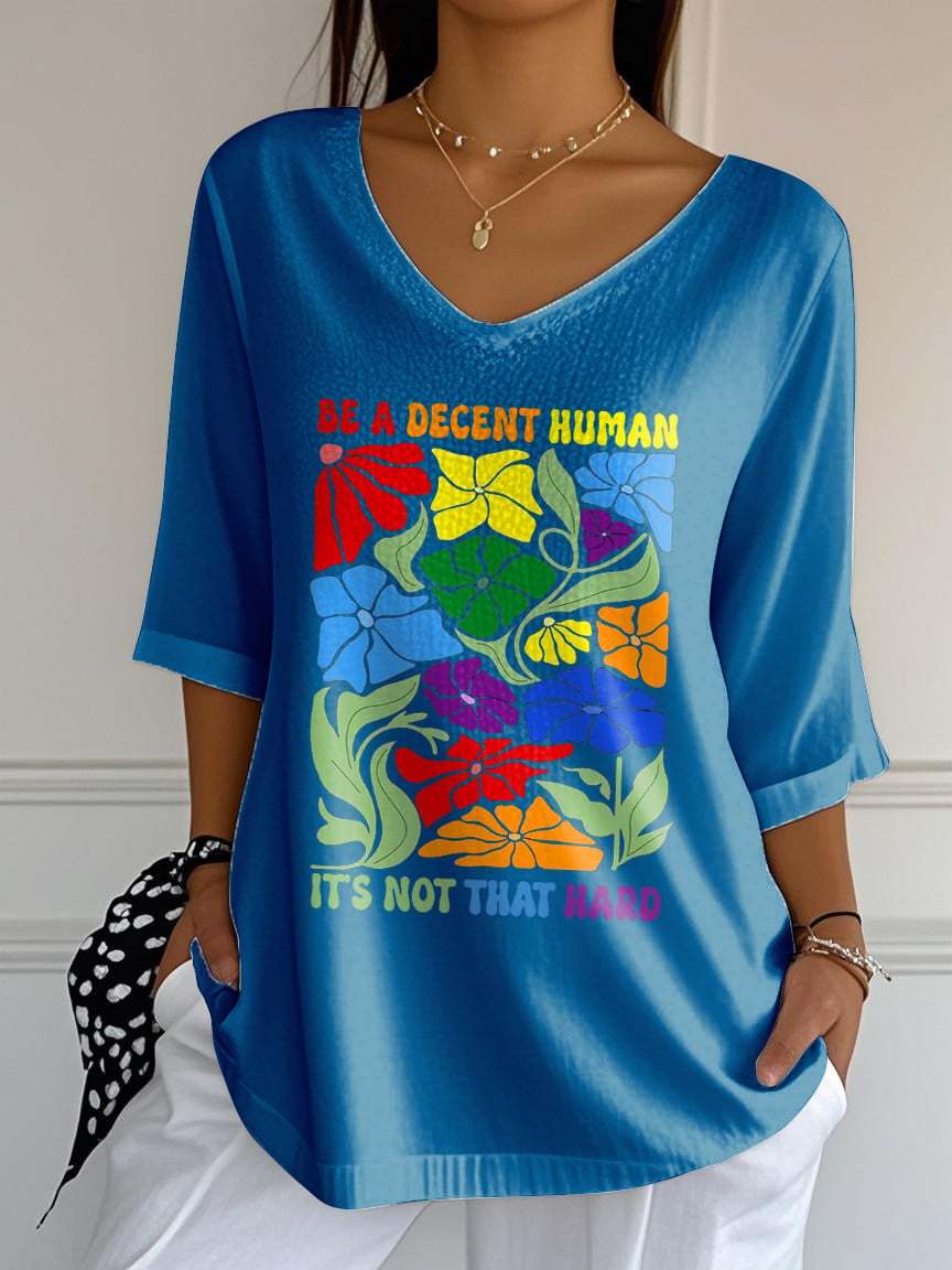 V-Neck Retro Be A Decent Human It's Not That Hard Print T-Shirt