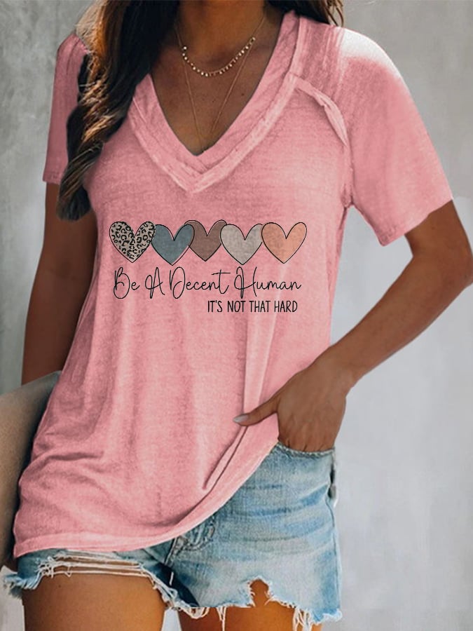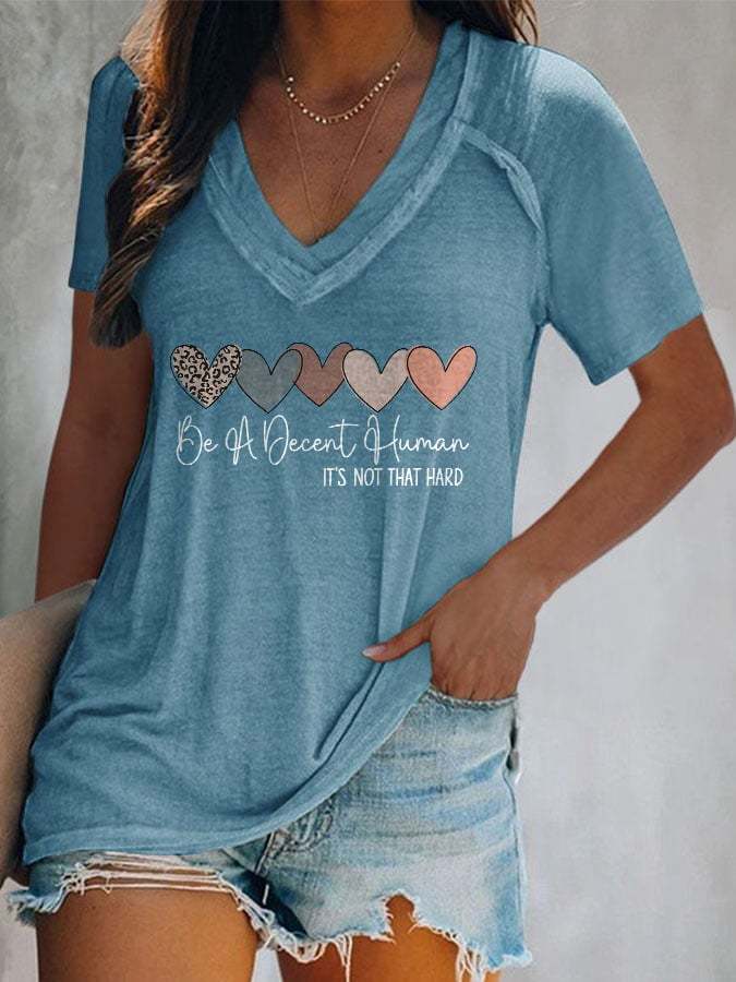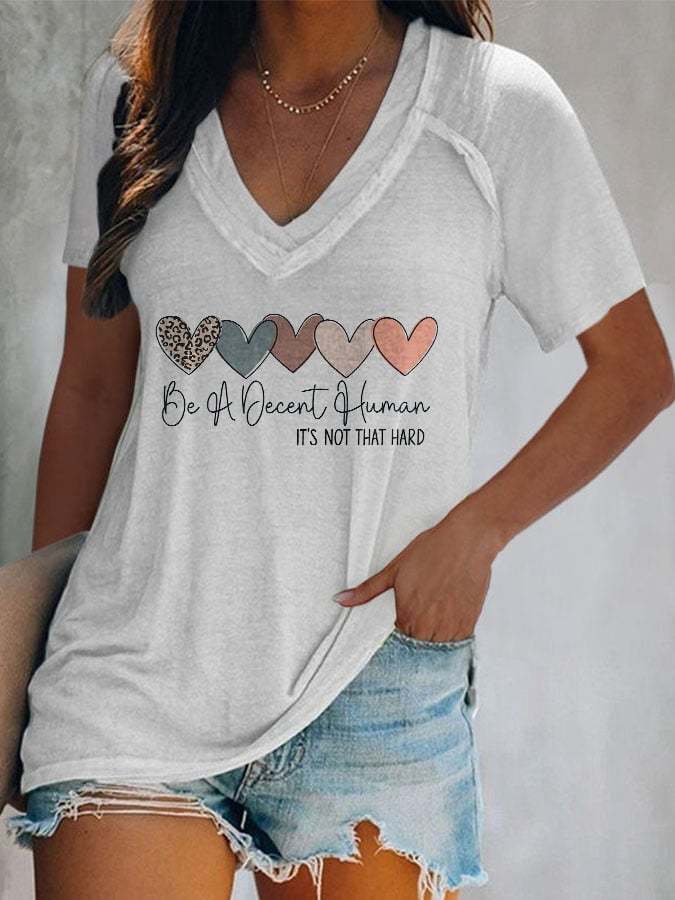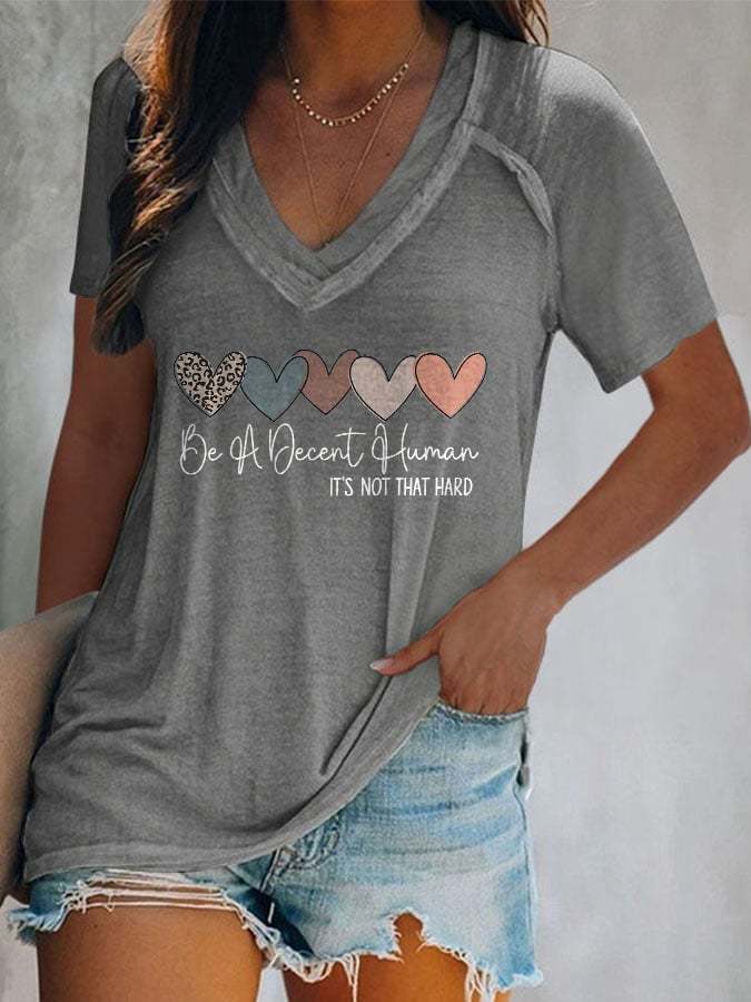 V-Neck Retro Be A Decent Human It's Not That Hard Print T-Shirt