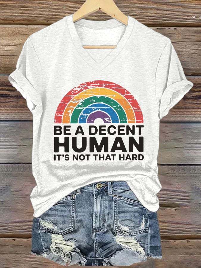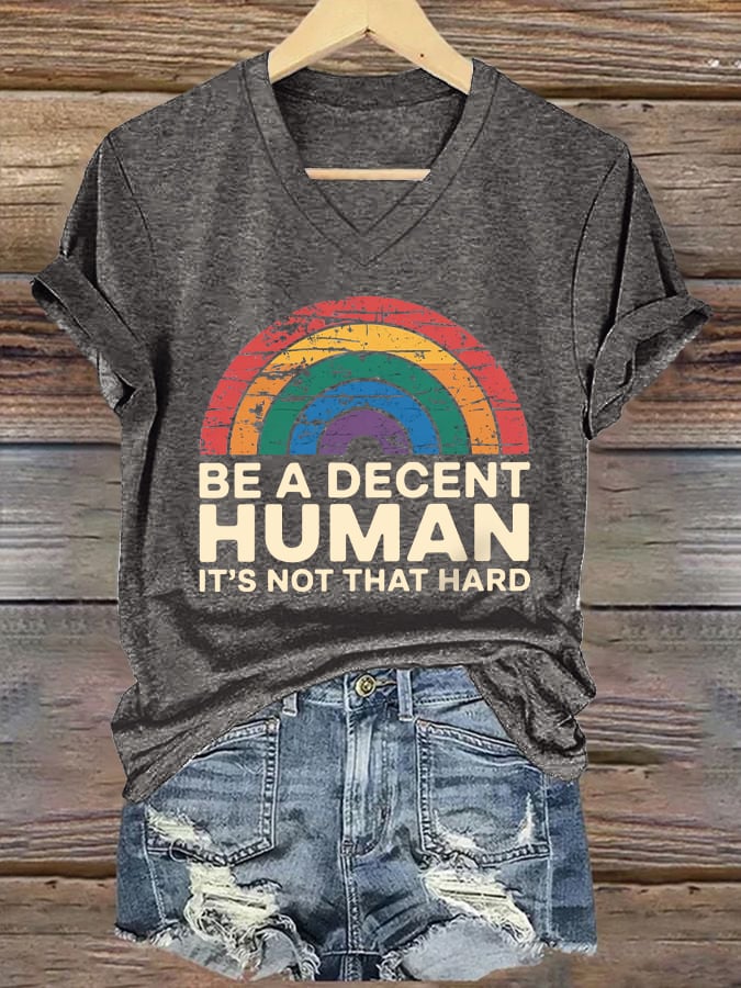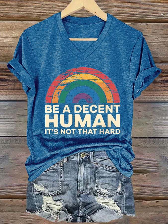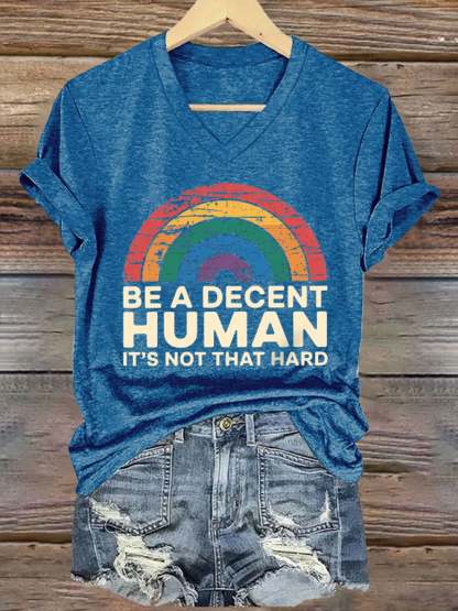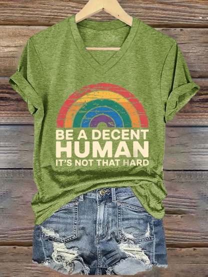 V-Neck Retro Be A Decent Human It's Not That Hard Print T-Shirt – lolonb