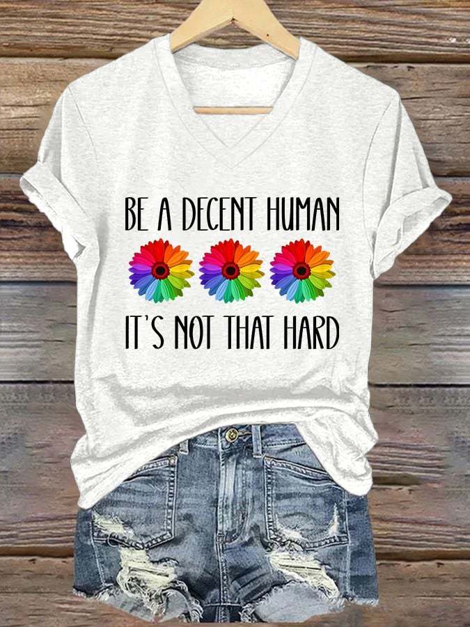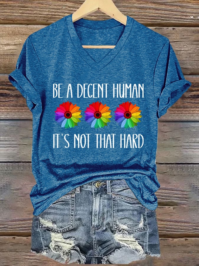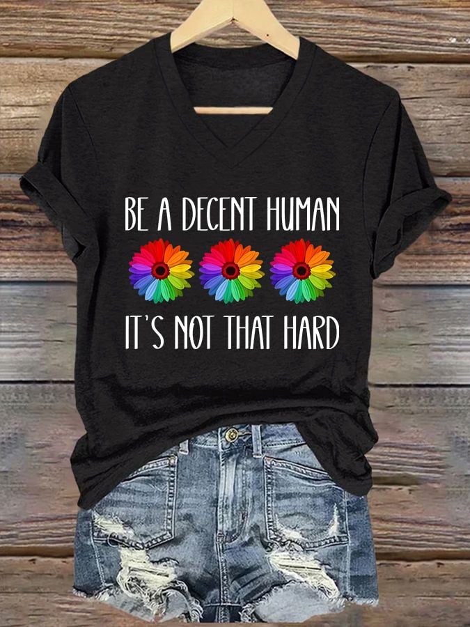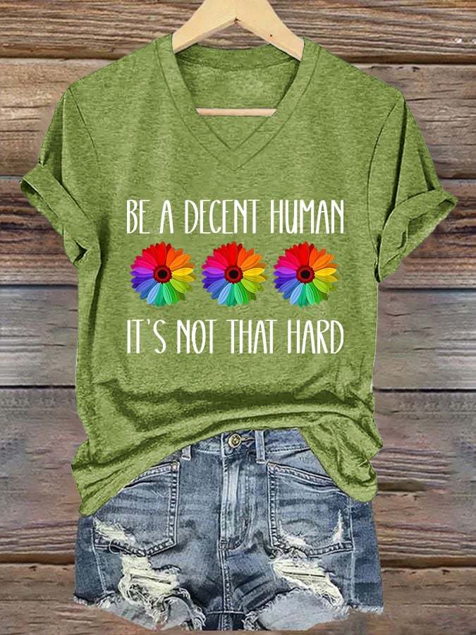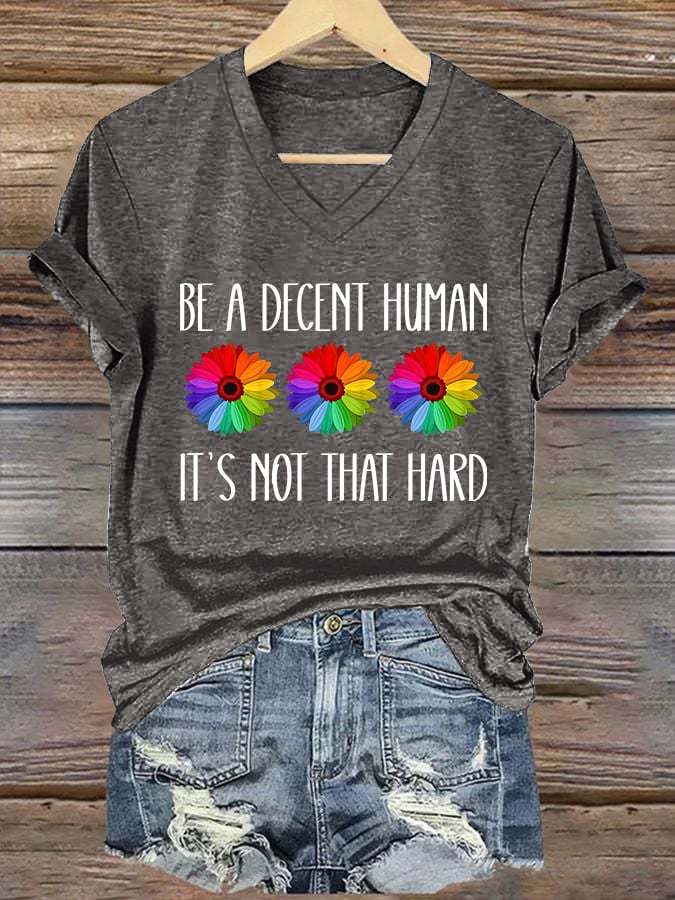 V-Neck Retro Be A Decent Human It's Not That Hard Print T-Shirt – lolonb