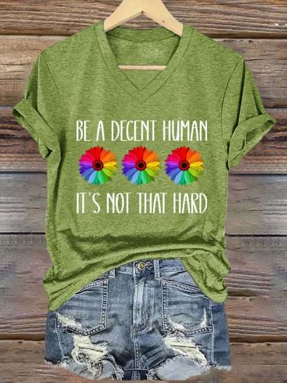 V-Neck Retro Be A Decent Human It's Not That Hard Print T-Shirt