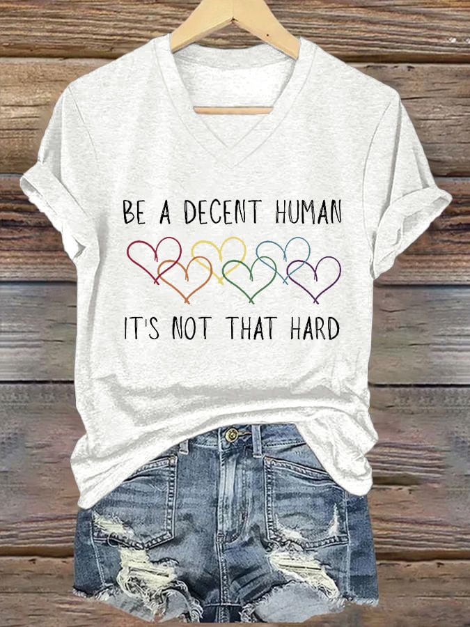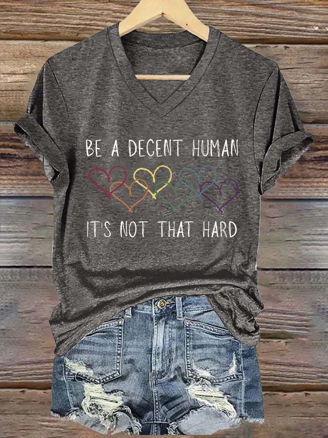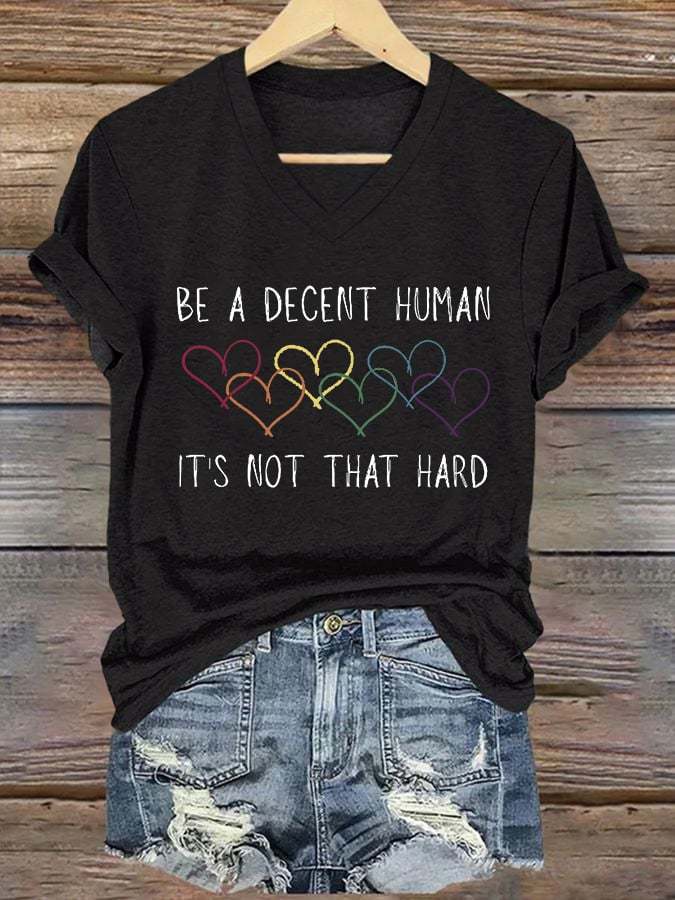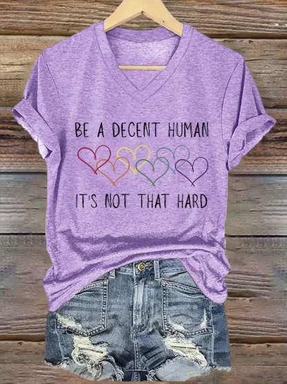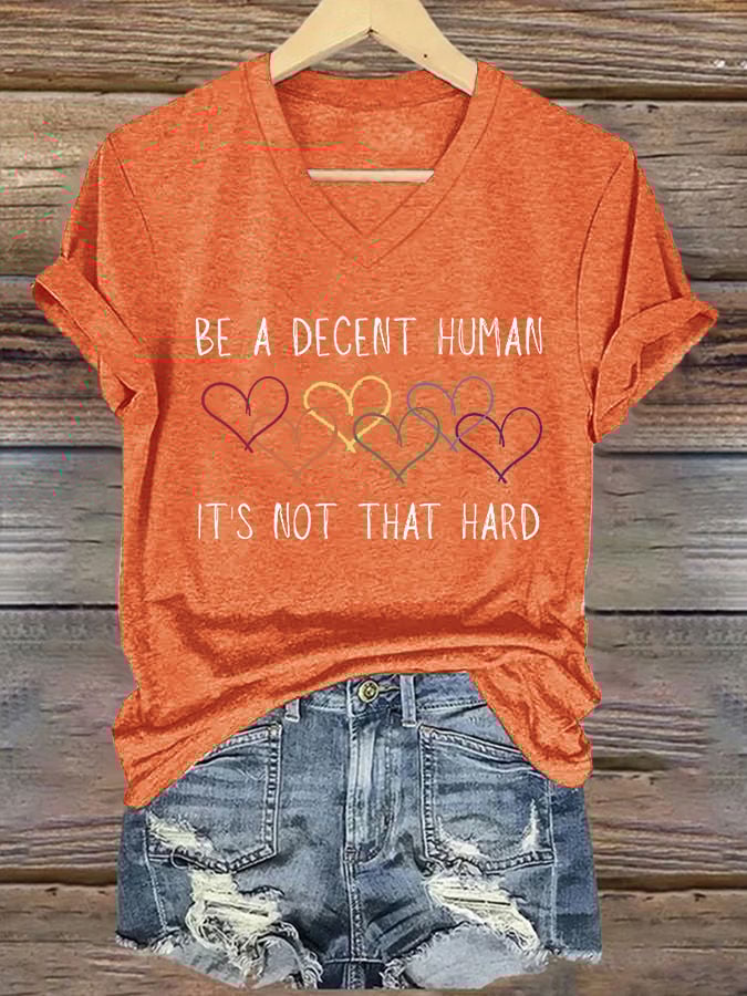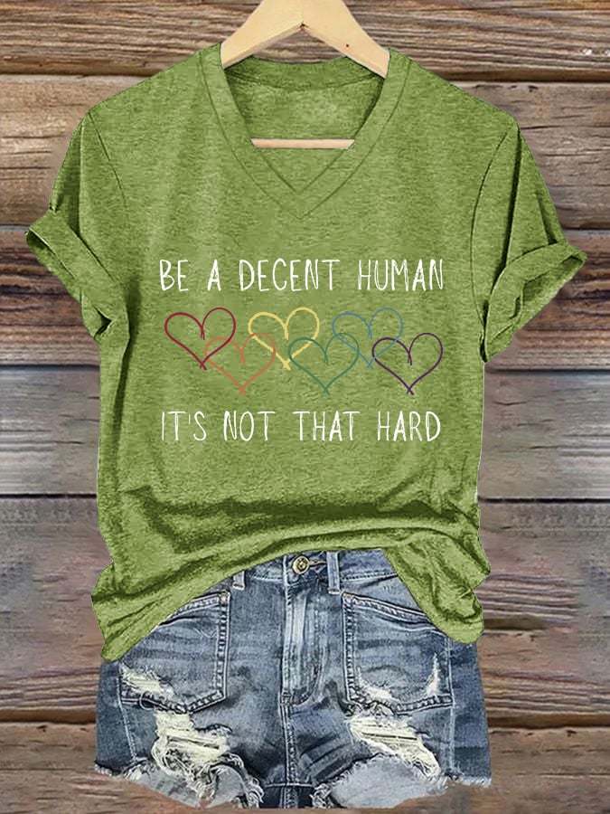V-Neck Retro Be A Decent Human It's Not That Hard Print T-Shirt
