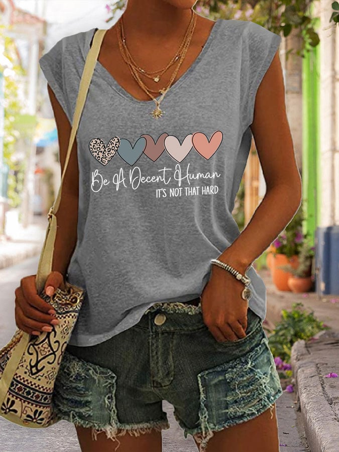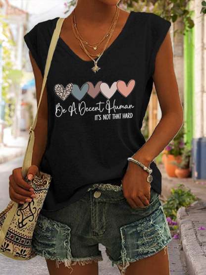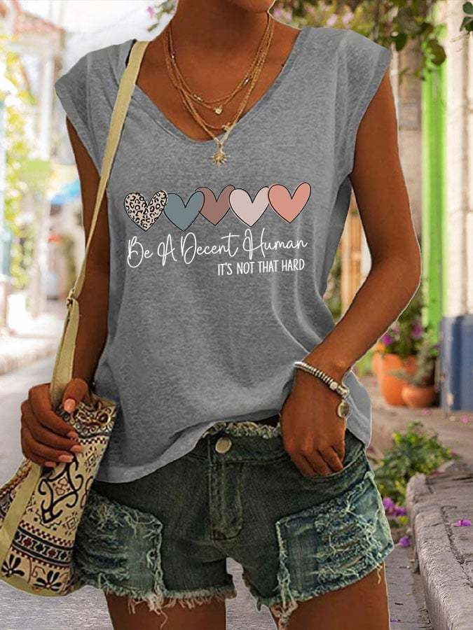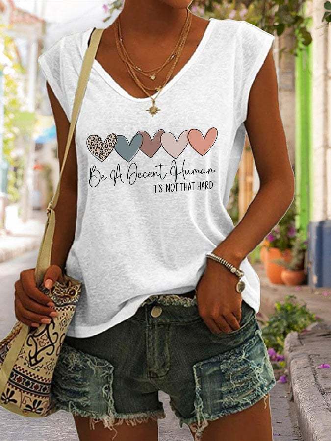 V Neck Retro Be A Decent Human It's Not That Hard Print Tank Tops – lolonb