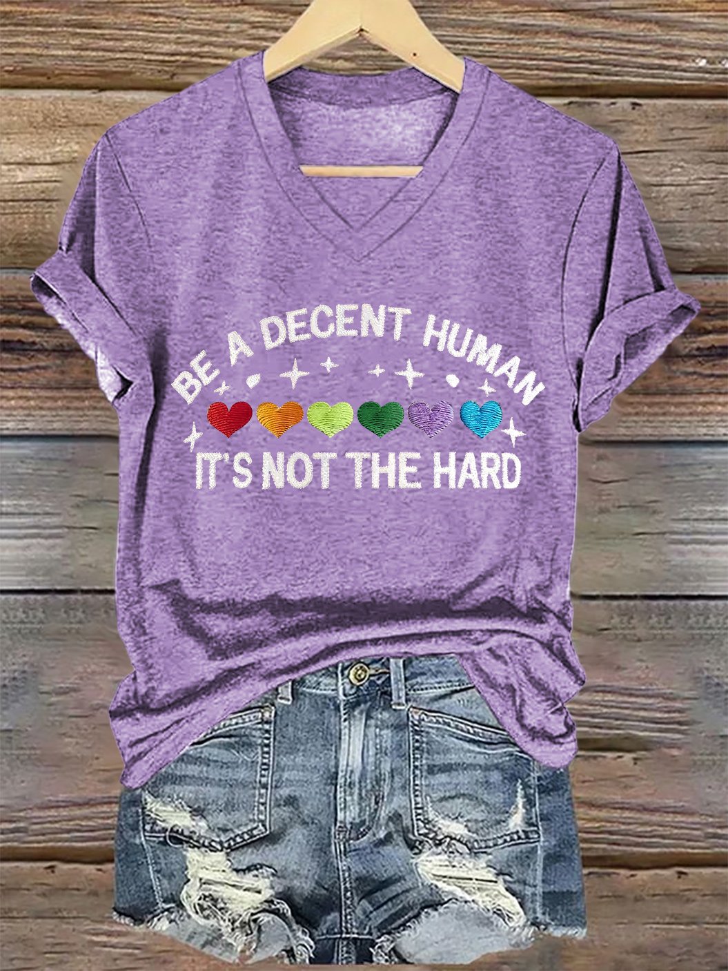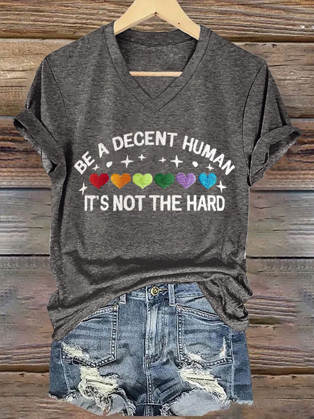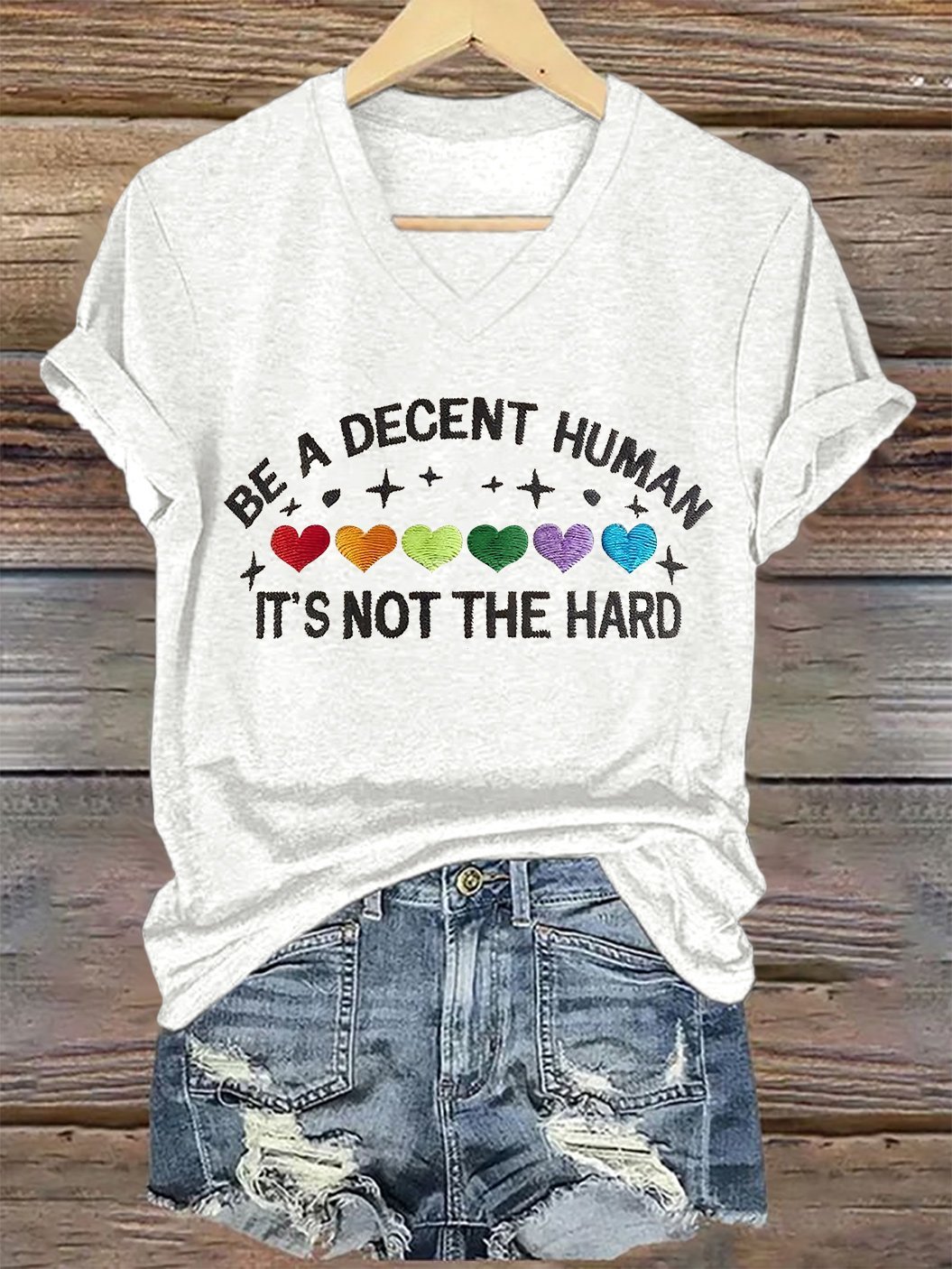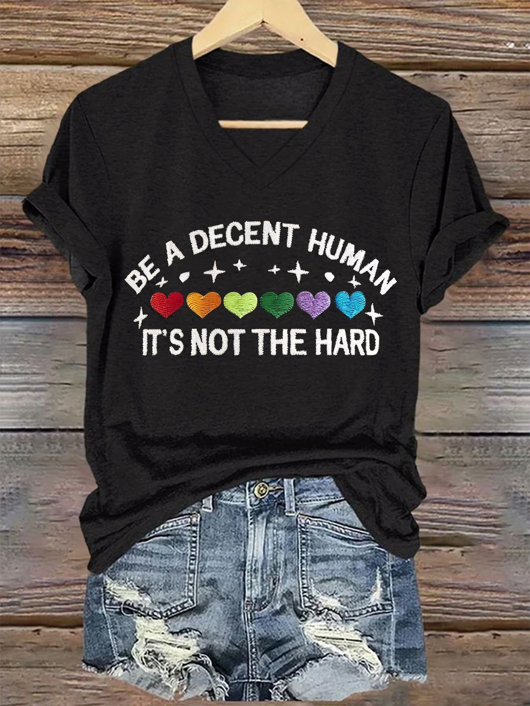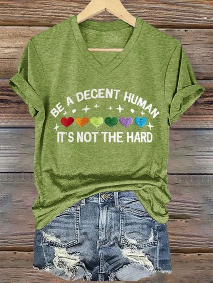 V-Neck Retro Be A Decent Human It's Not The Hard Print T-Shirt