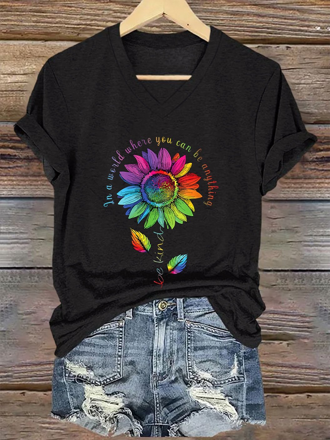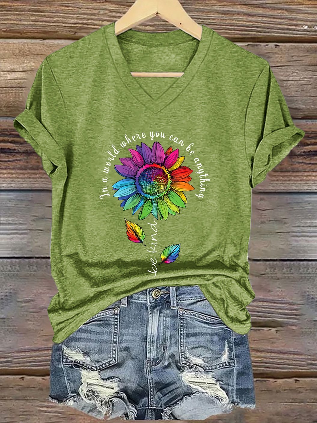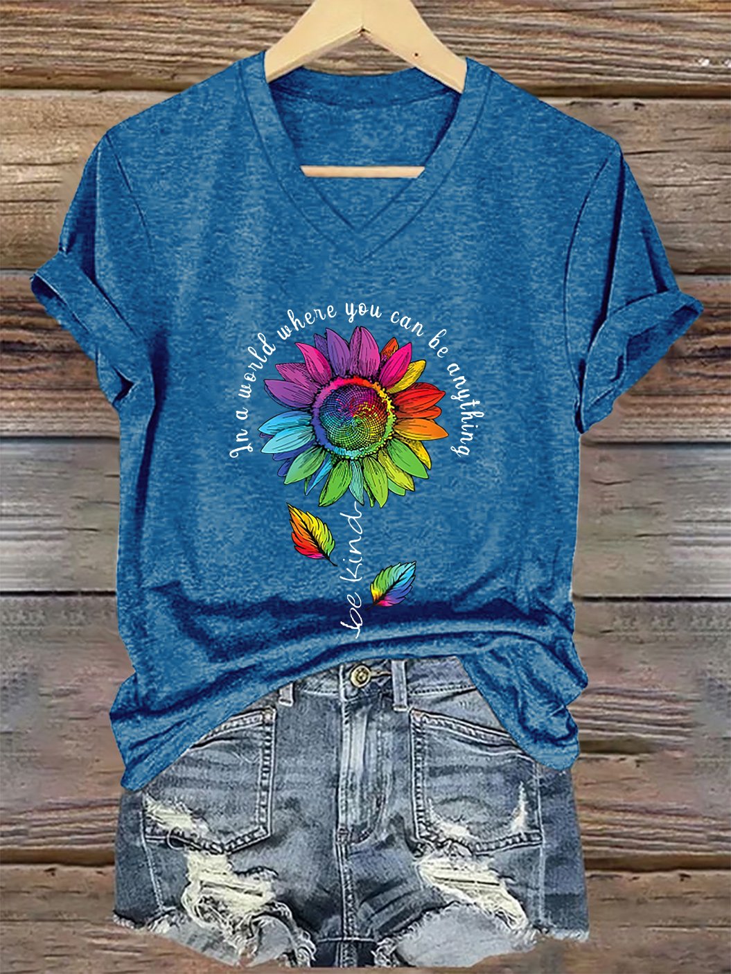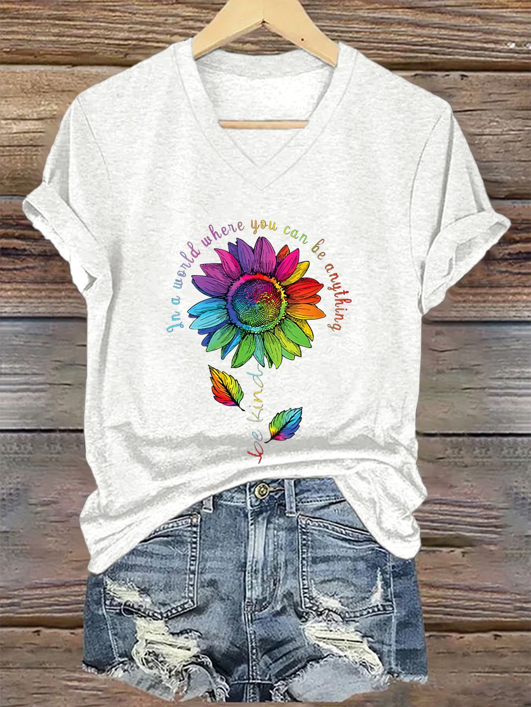V-Neck Retro In A World Where You Can Be Anything, Be Kind Print T-Shirt