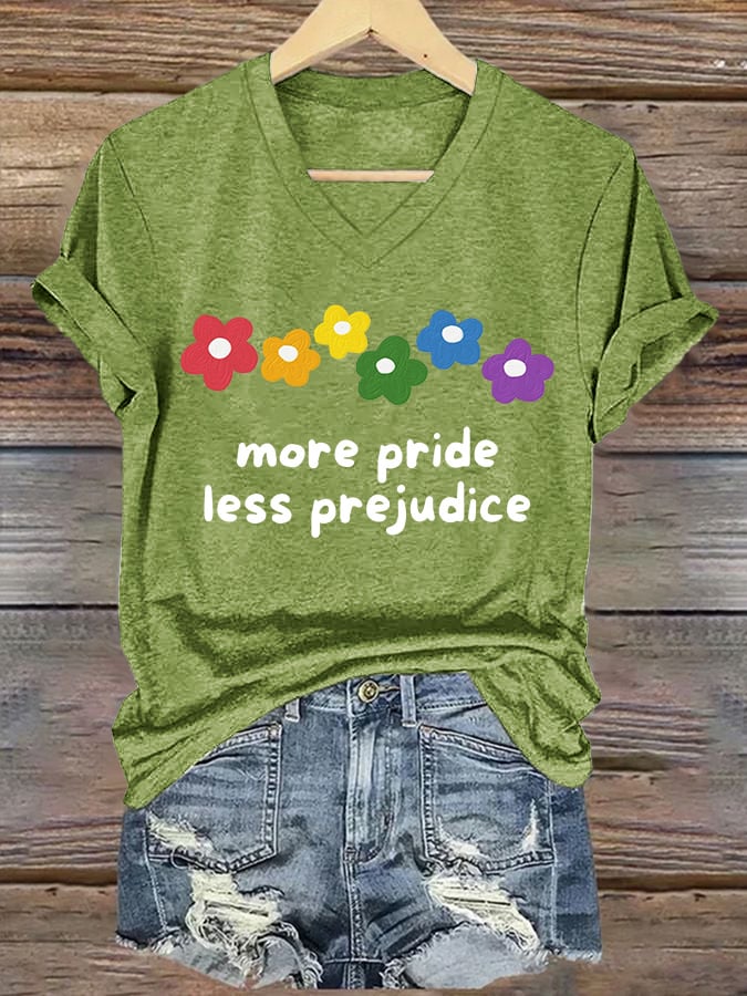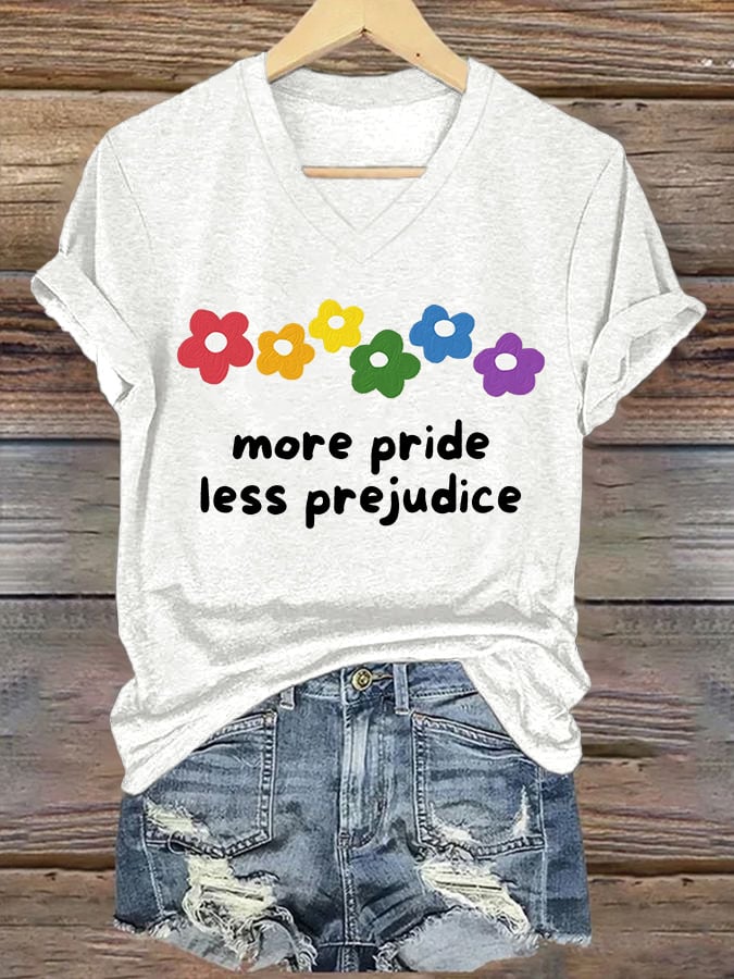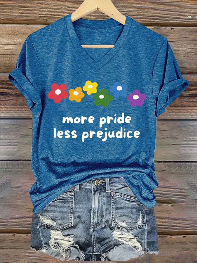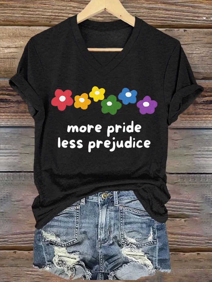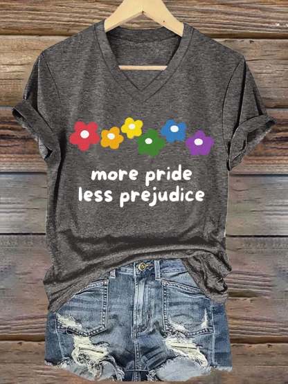 V-Neck Retro More Pride Less Prejudice Print T-Shirt