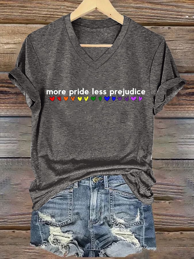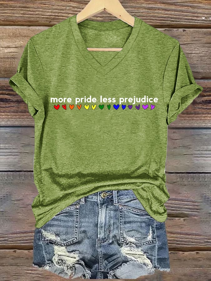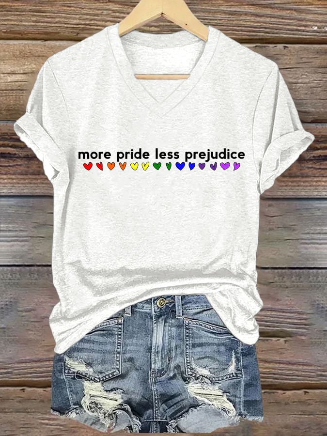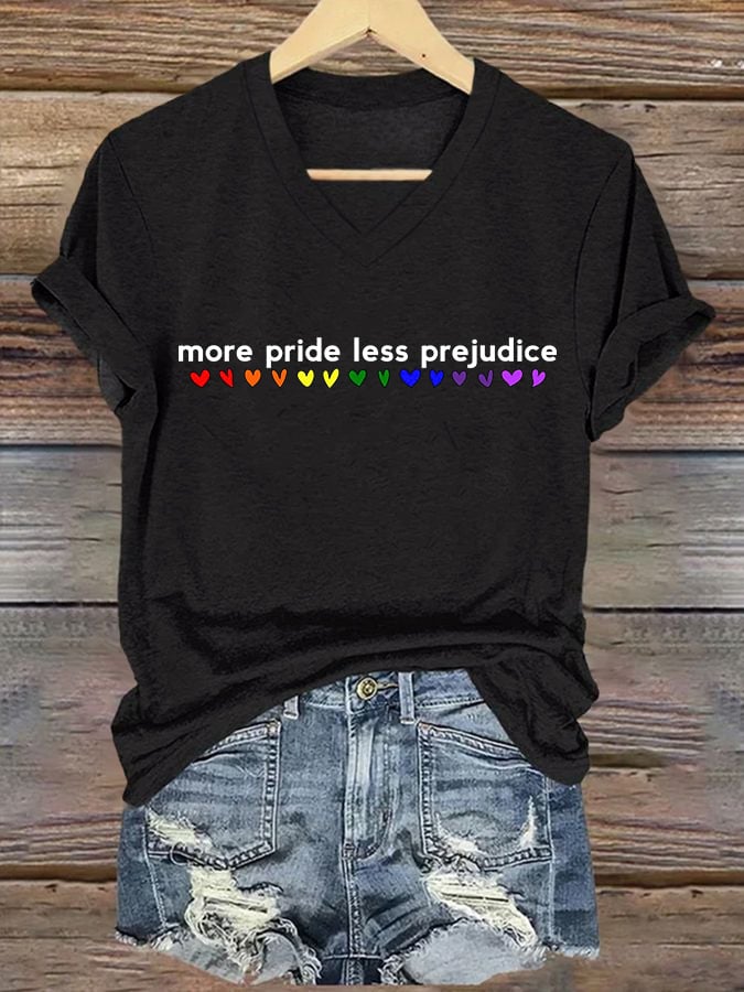 V-Neck Retro Pride Rainbow More Pride Less Prejudice Print T-Shirt