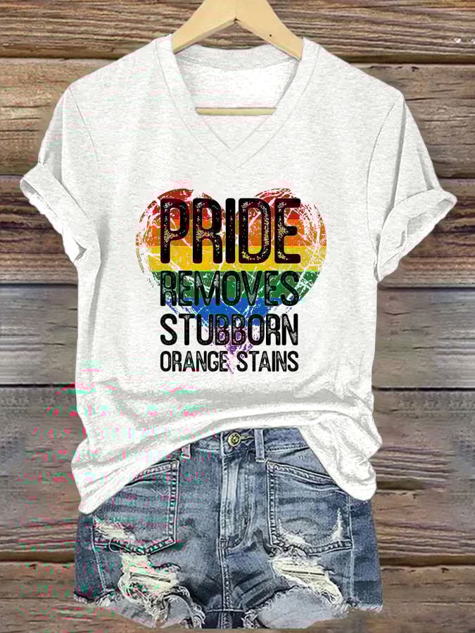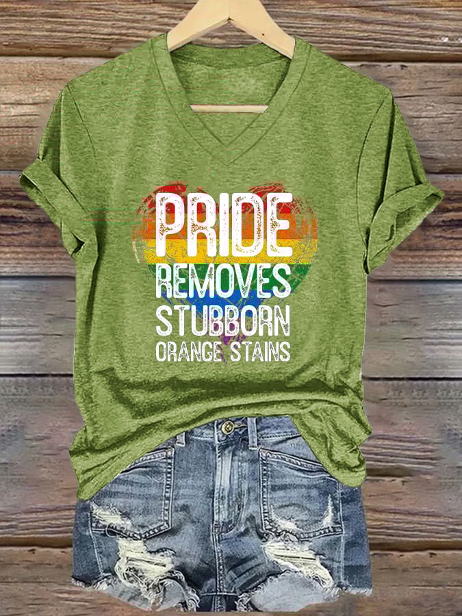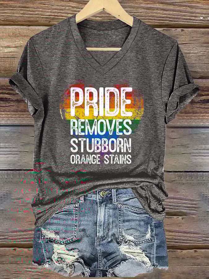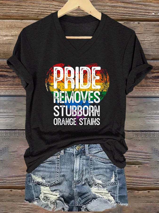 V-Neck Retro Pride Removes Stubborn Orange Stains Print T-Shirt