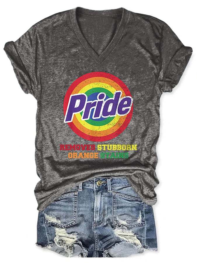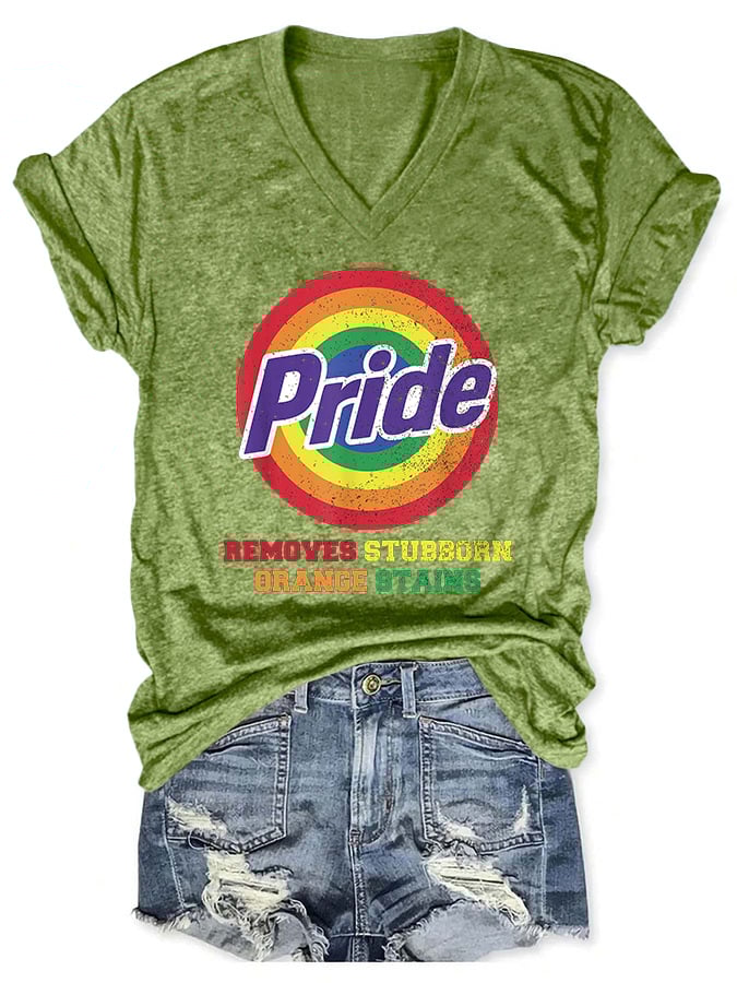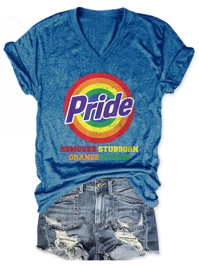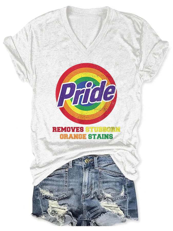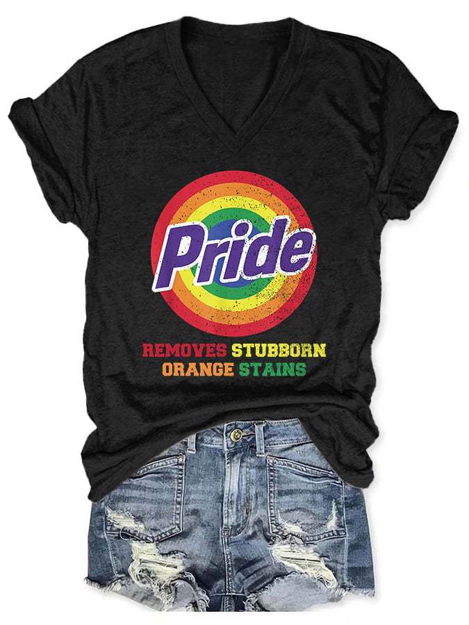V-Neck Retro Pride Removes Stubborn Orange Stains Print T-Shirt