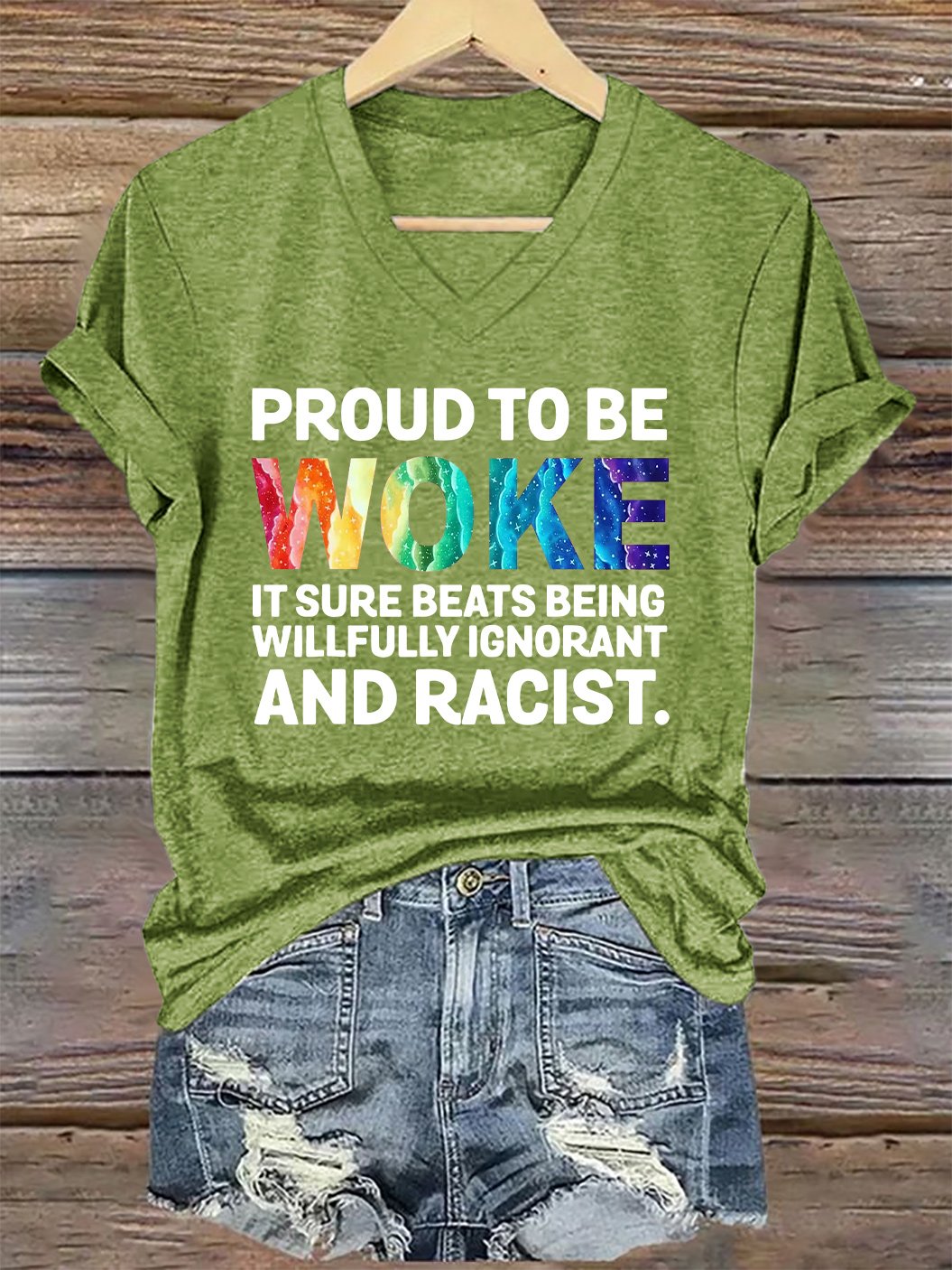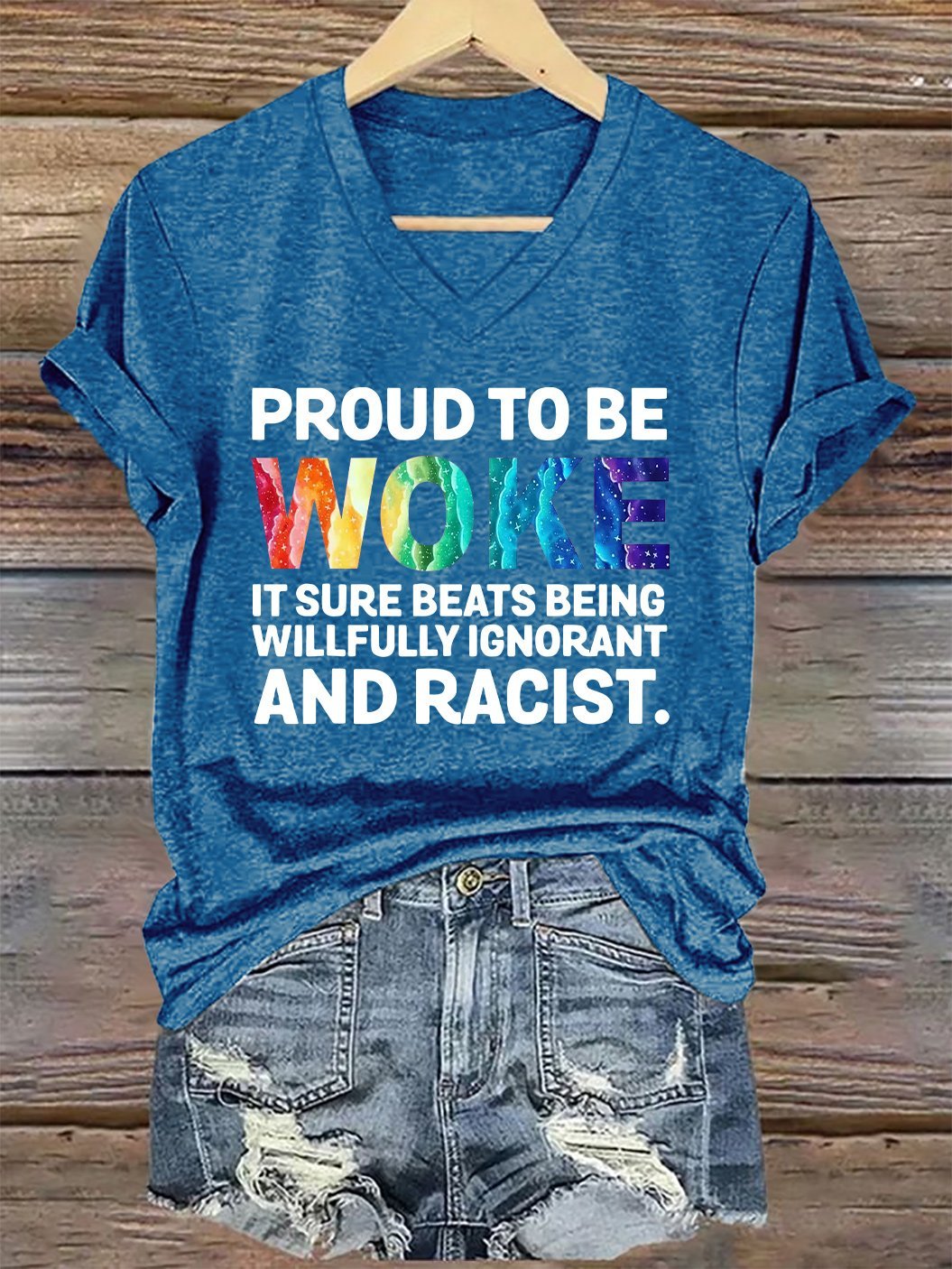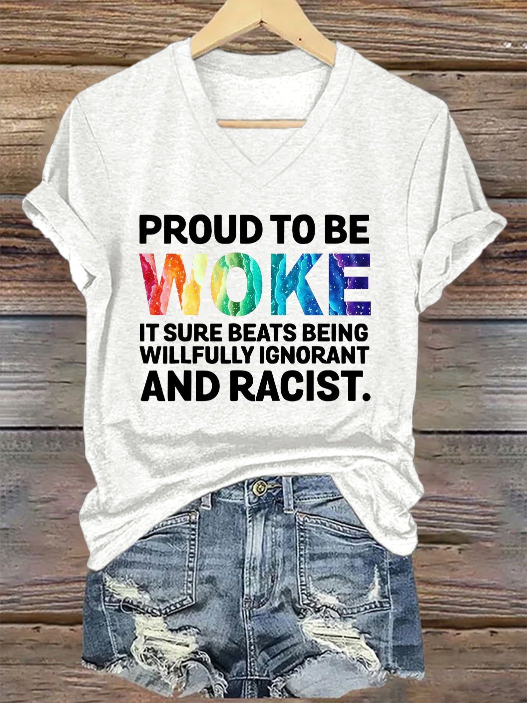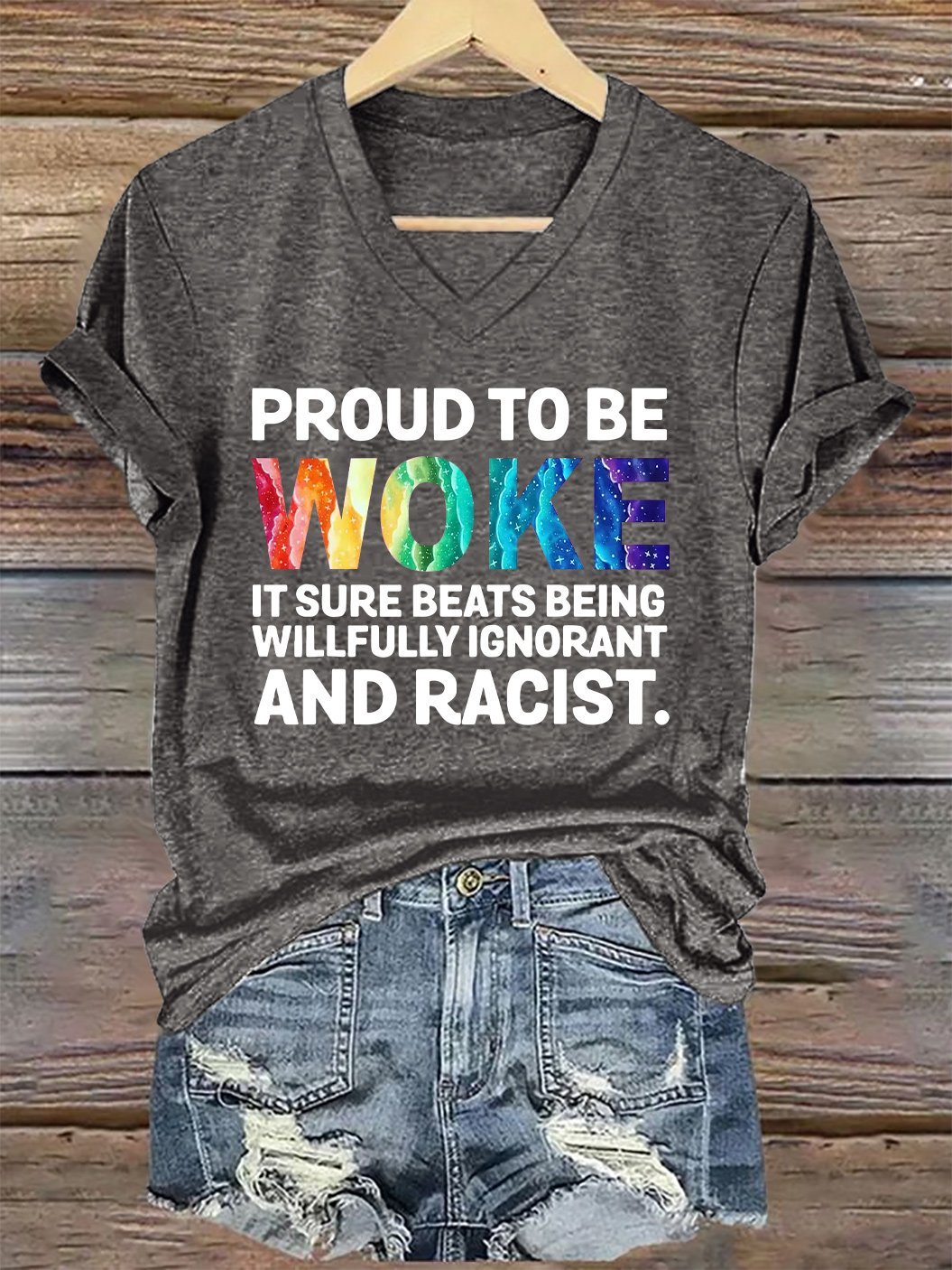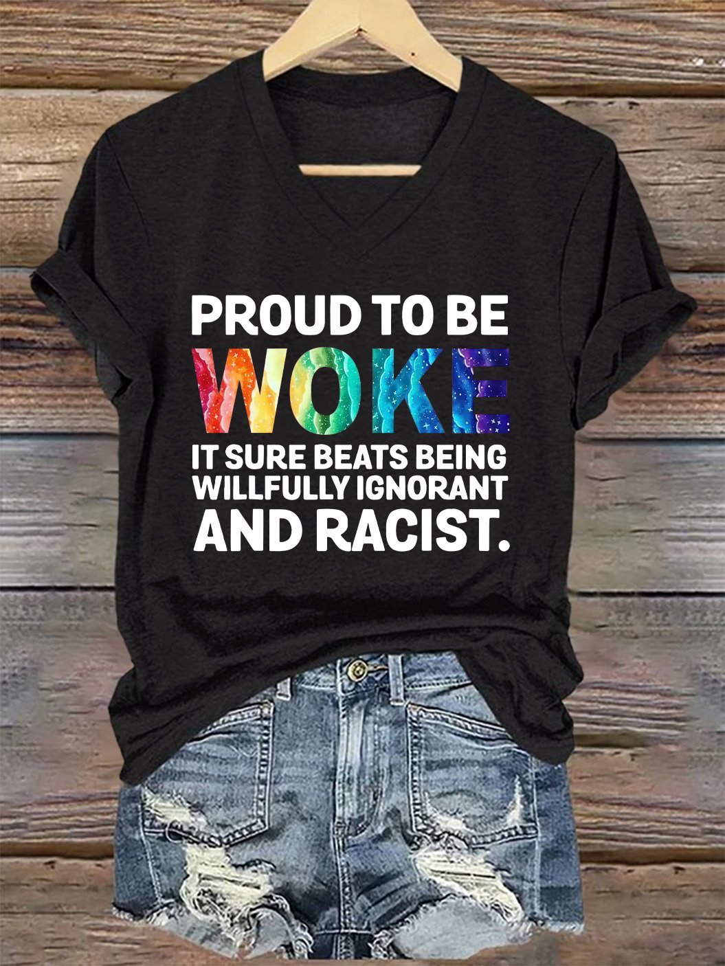 V-Neck Retro Proud To Be Woke It Sure Beats Being Willfully Ignorant And Racist Print T-Shirt