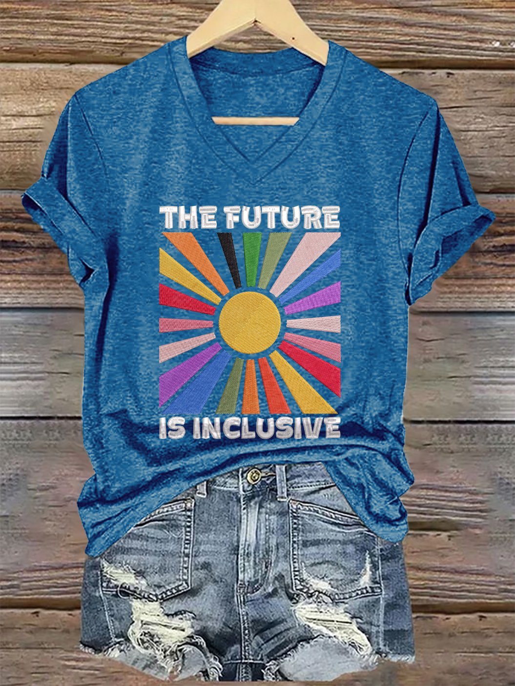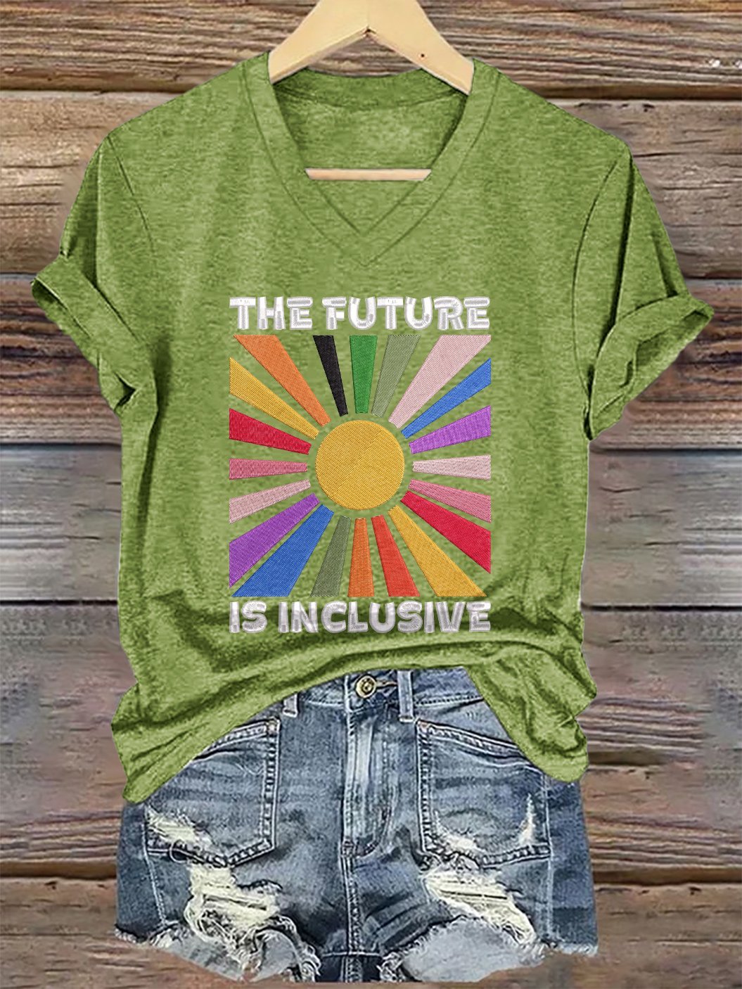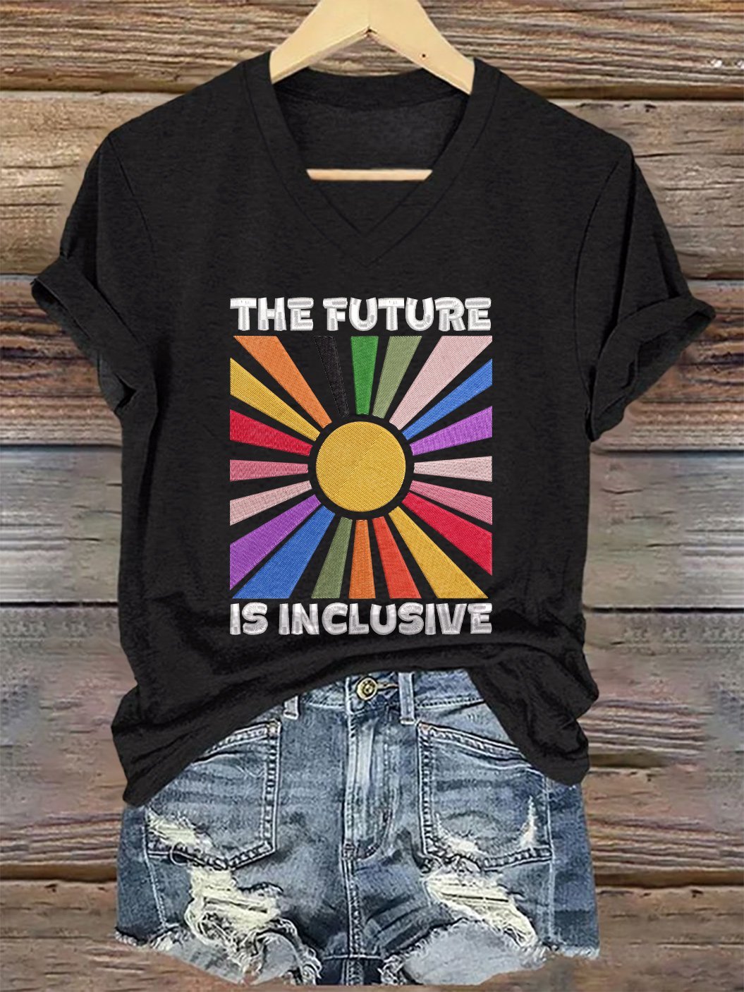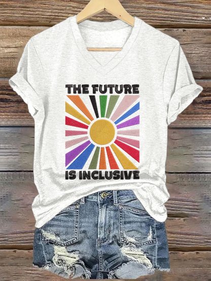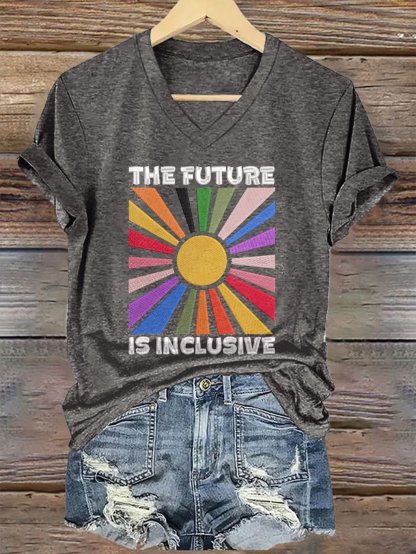 V-Neck Retro The Future Is Inclusive Print T-Shirt