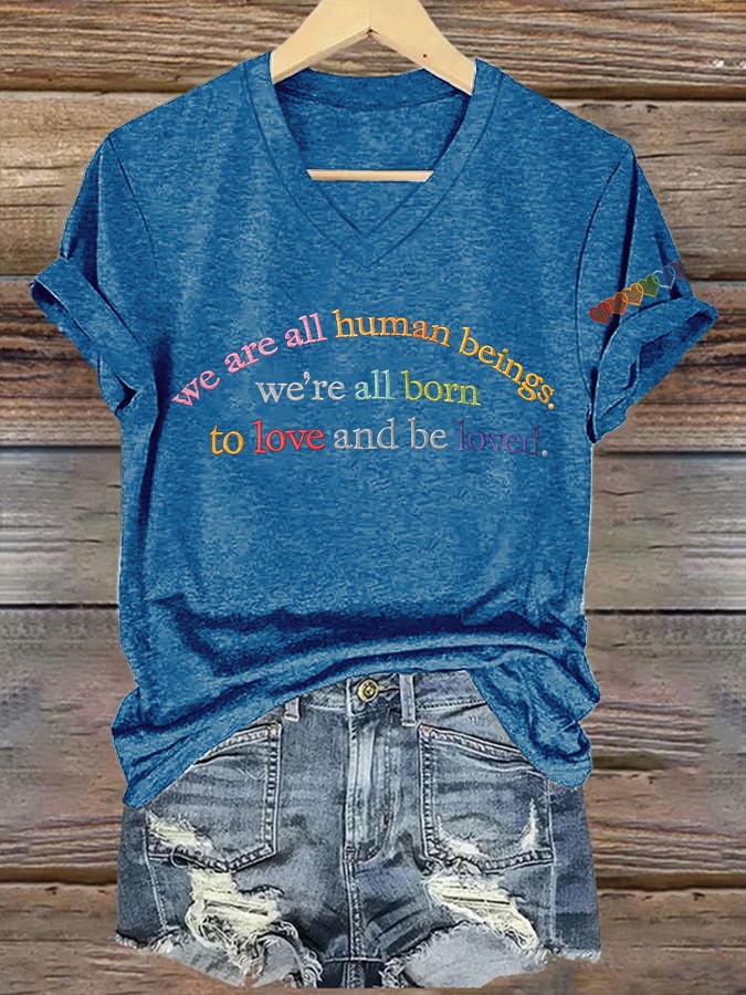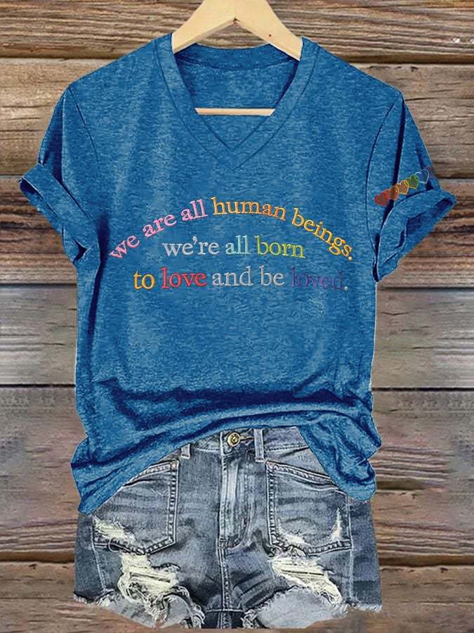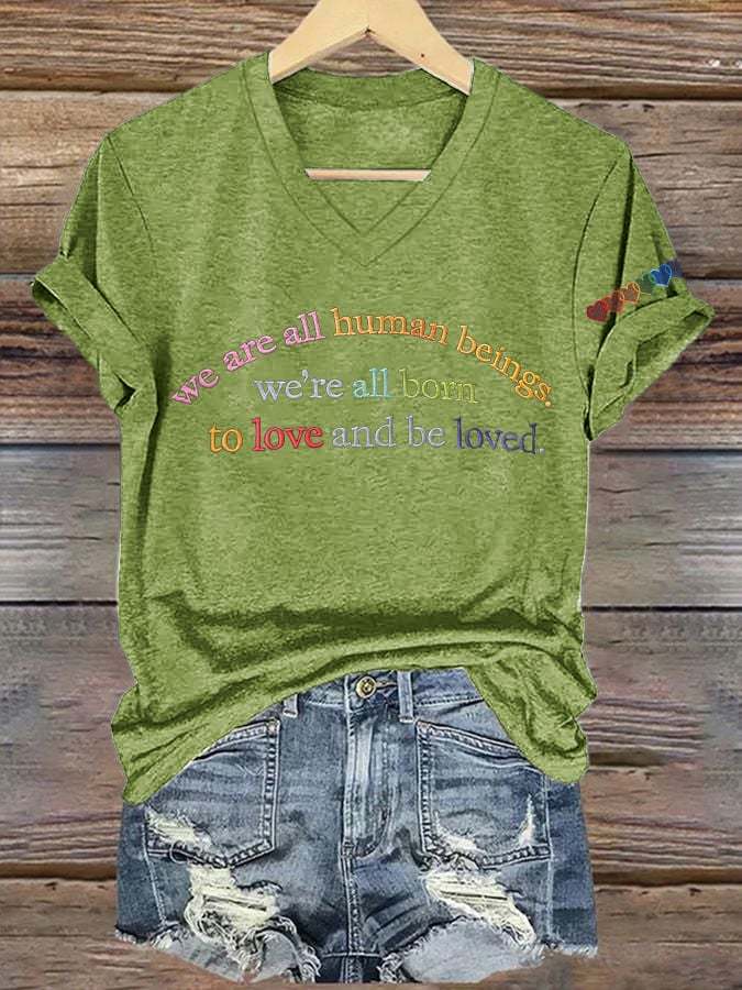 V-Neck Retro We Are All Human Beings We’re All Born To Love And Be Loved Print T-Shirt