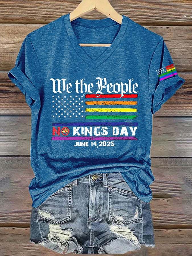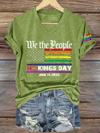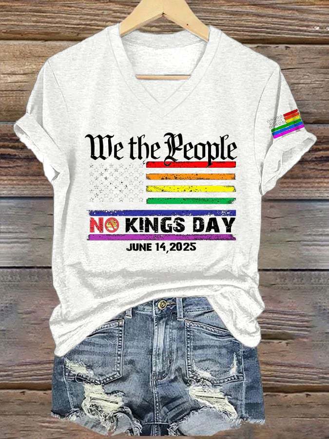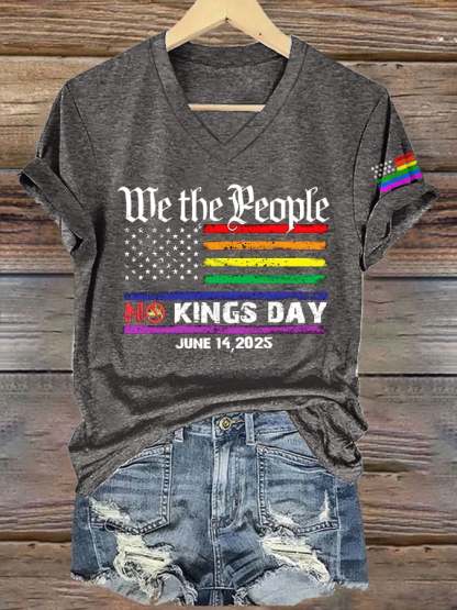 V-Neck Retro We The People No Kings Day June 14, 2025 Print T-Shirt