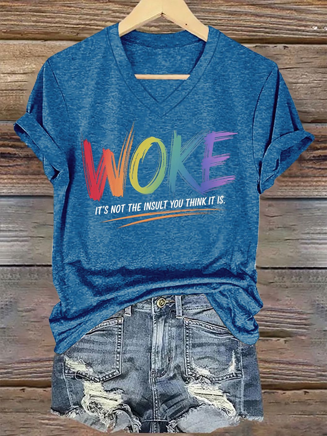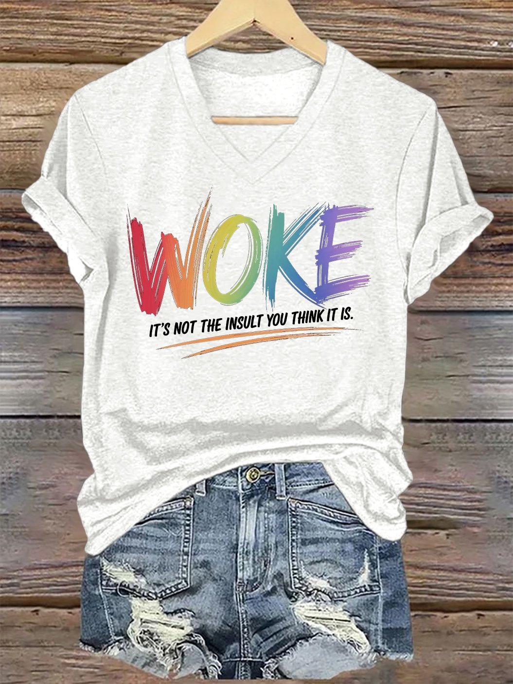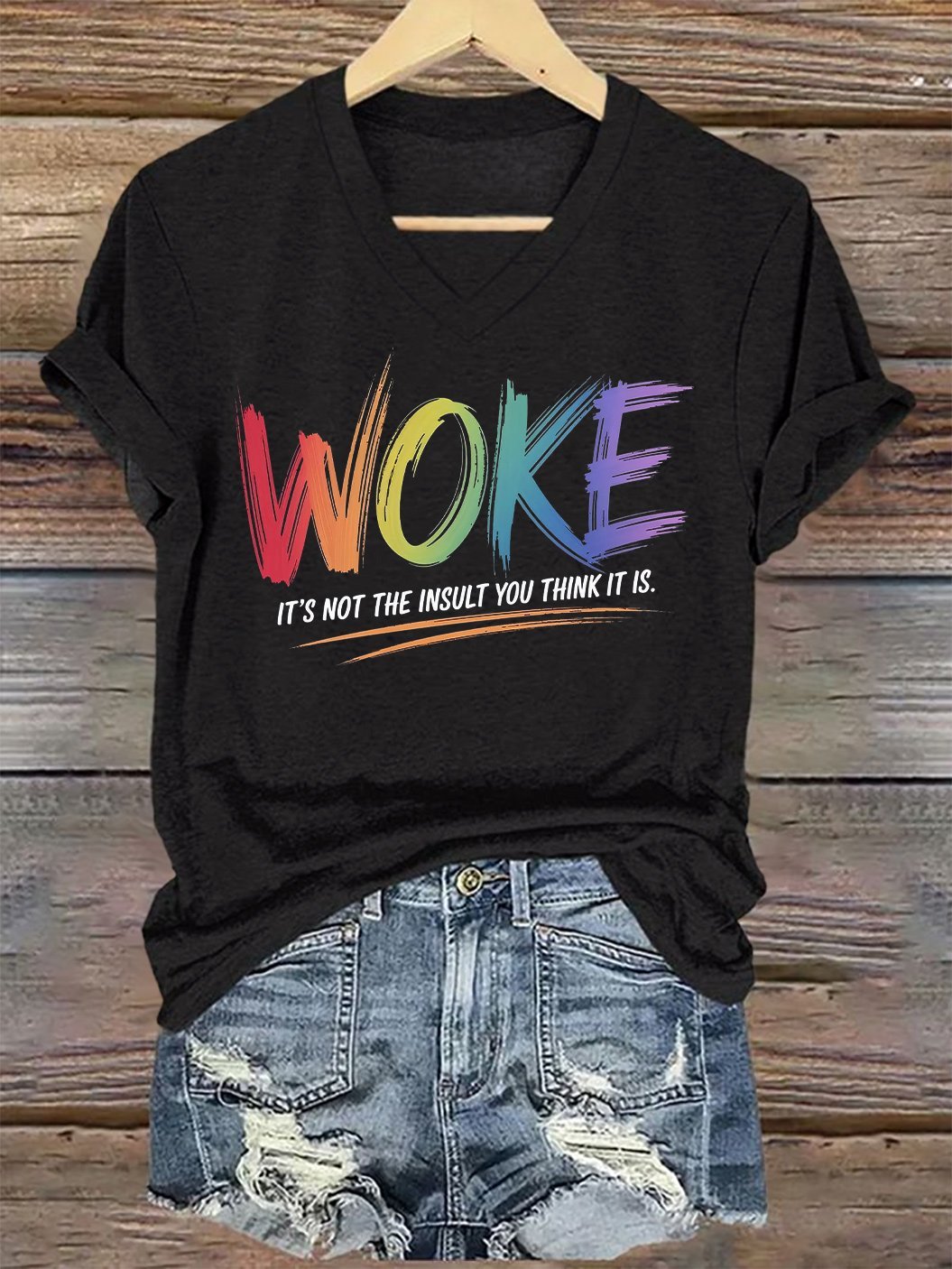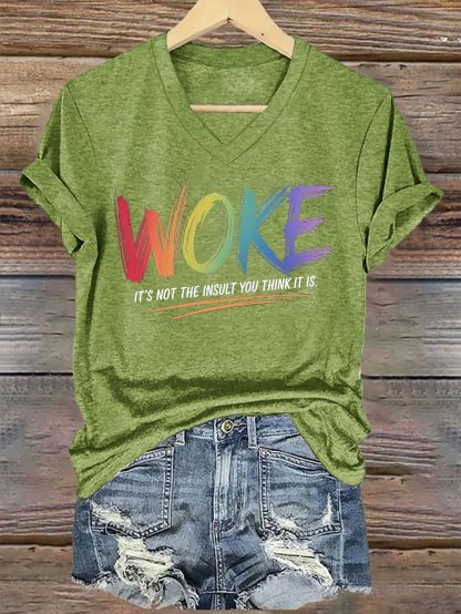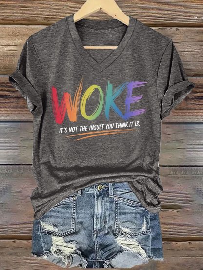 V-Neck Retro Woke It's Not The Insult You Think It Is Print T-Shirt