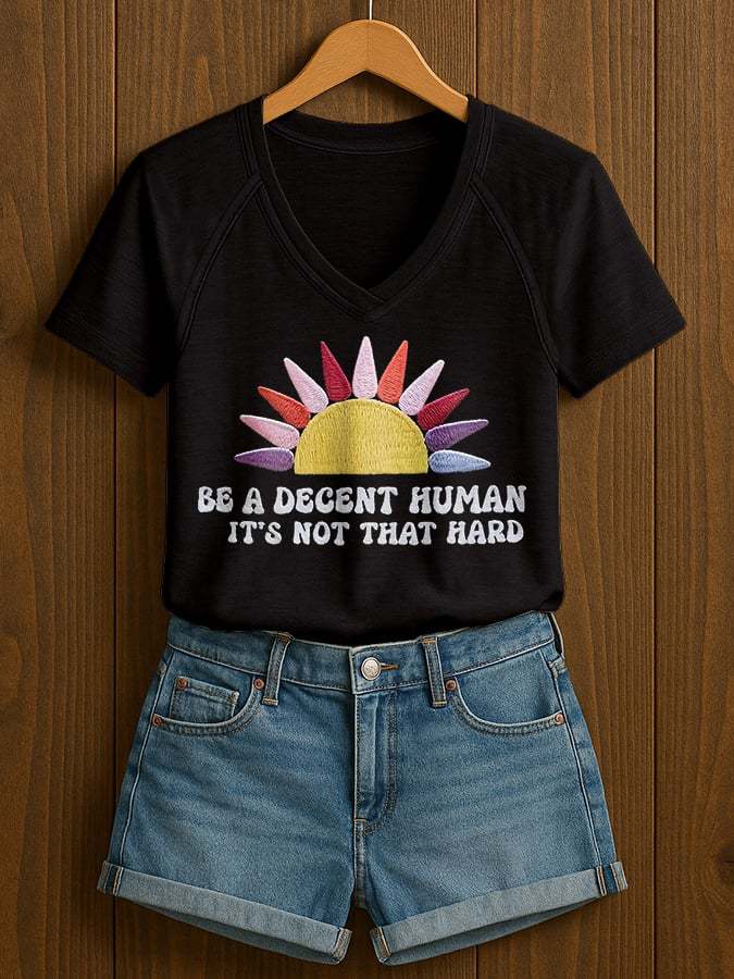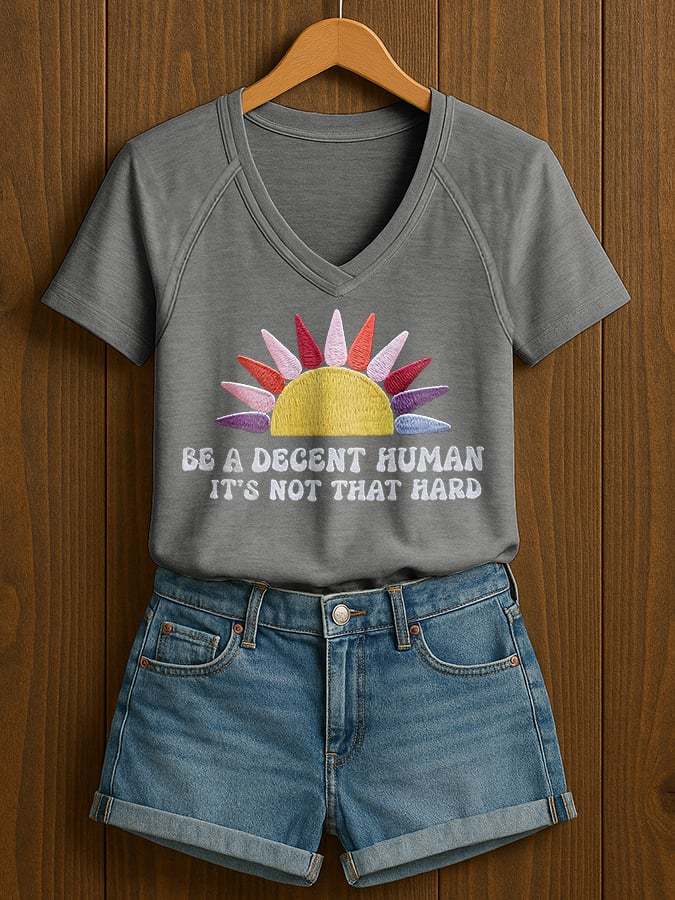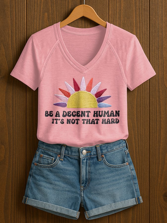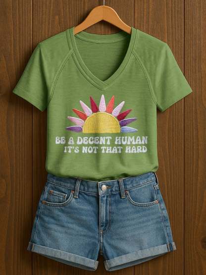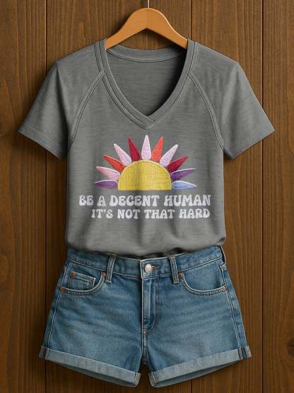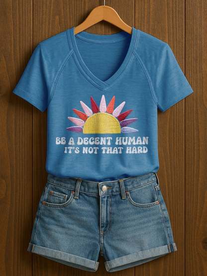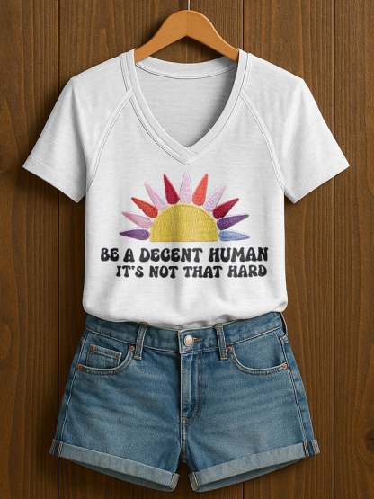 V-Neck Retro Women Be A Decent Human It's Not That Hard Print T-Shirt