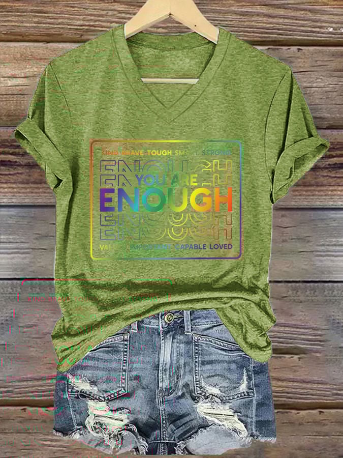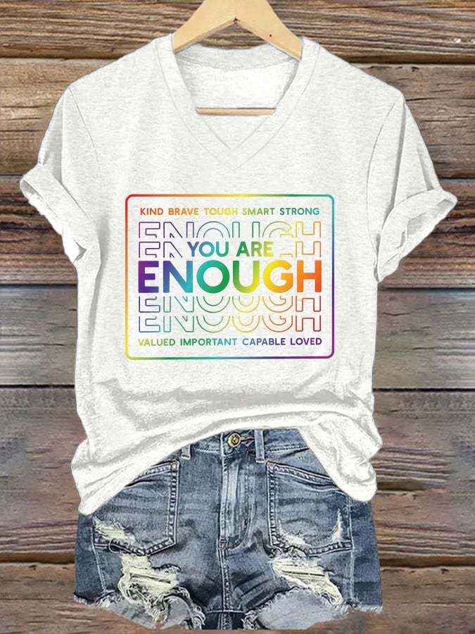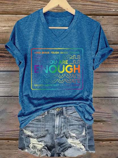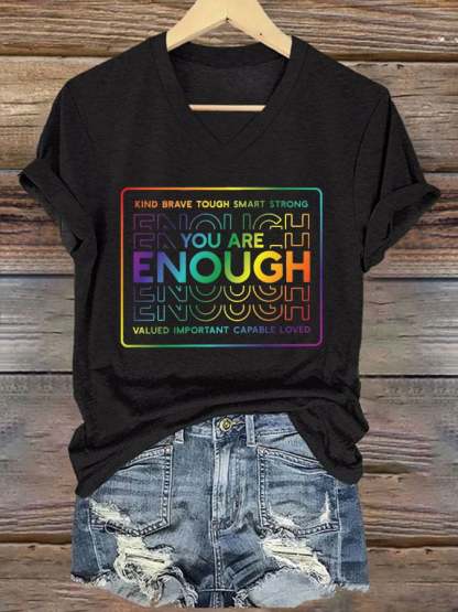 V-Neck Retro You Are Enough Kind Brave Tough Smart Strong Valued Important Capable Loved Print T-Shirt