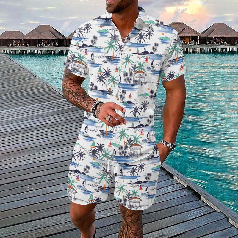 Vacation Summer Island Printed Short-sleeved Casual Shirt Set