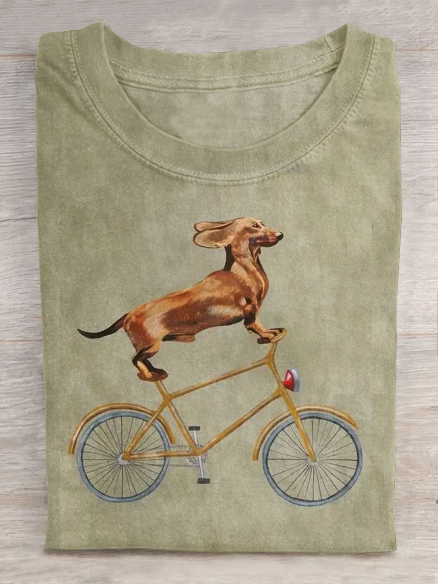 Vintage Dachshund Dog Art Print Casual Short Sleeve T-shirt