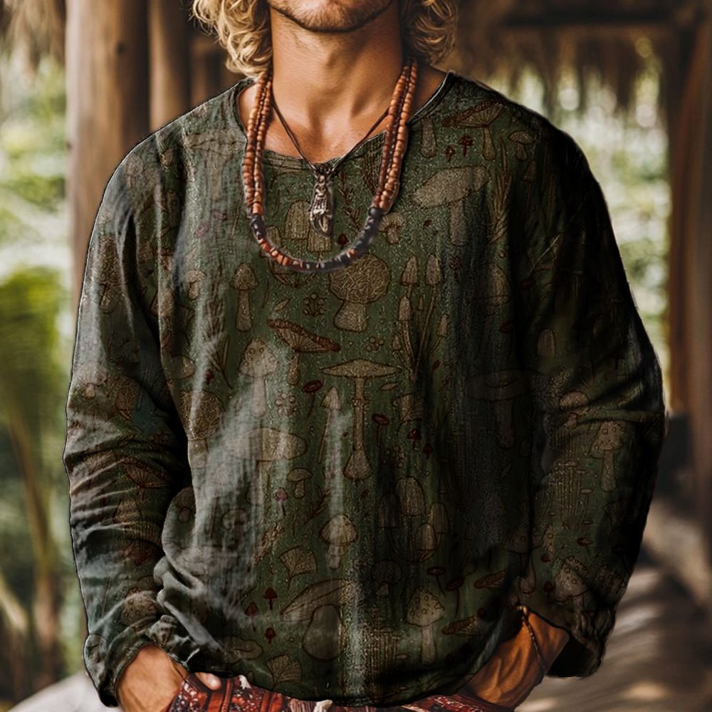 Vintage Mushroom Pattern Art Print 100% Cotton Casual Shirt