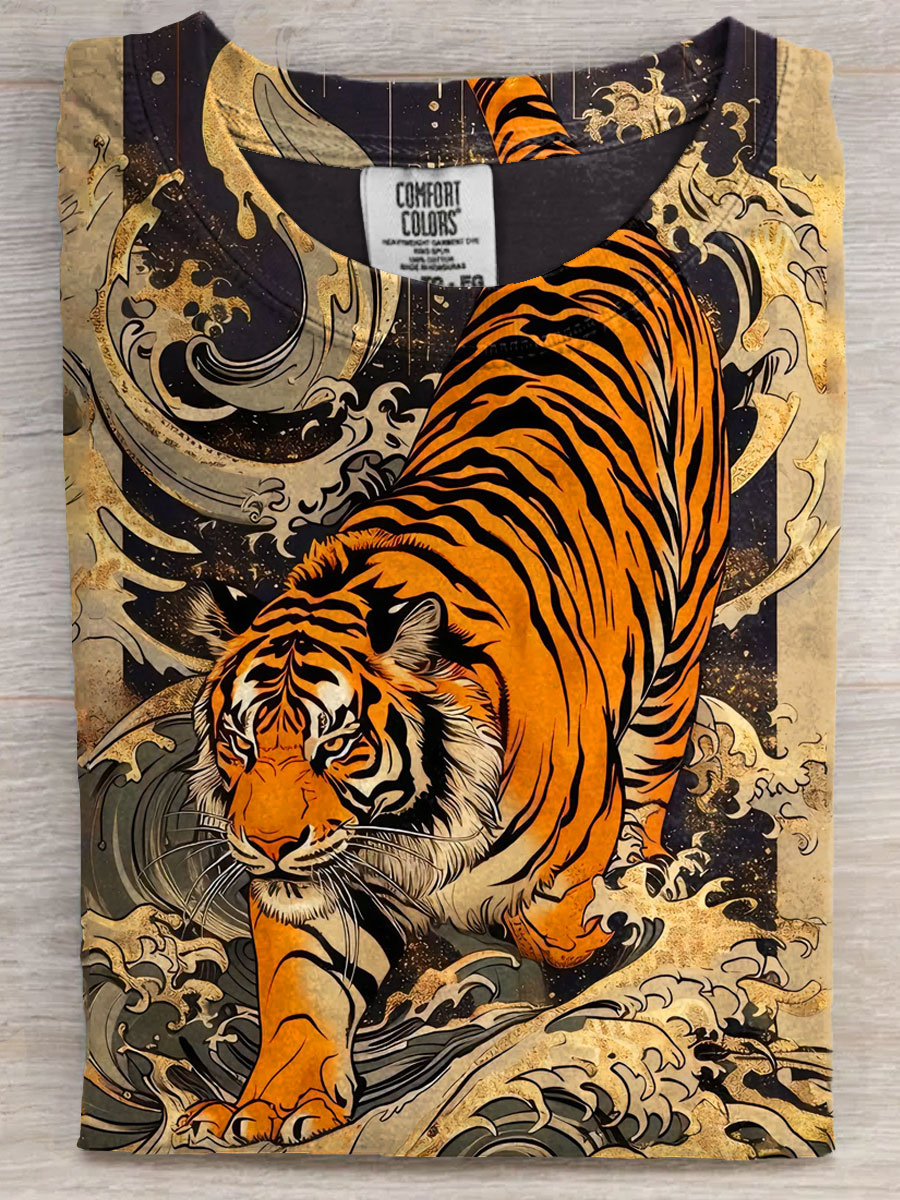 vintage Tiger Art Print Casual Short Sleeve T-shirt