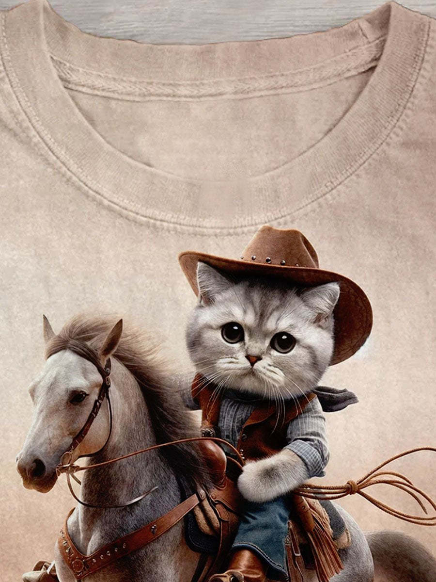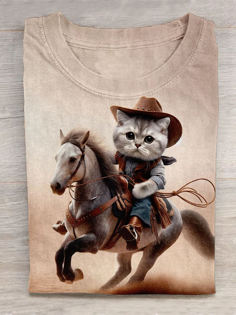 Western Cow Boy Cat Horse Animal Art Pattern Print Design T-shirt