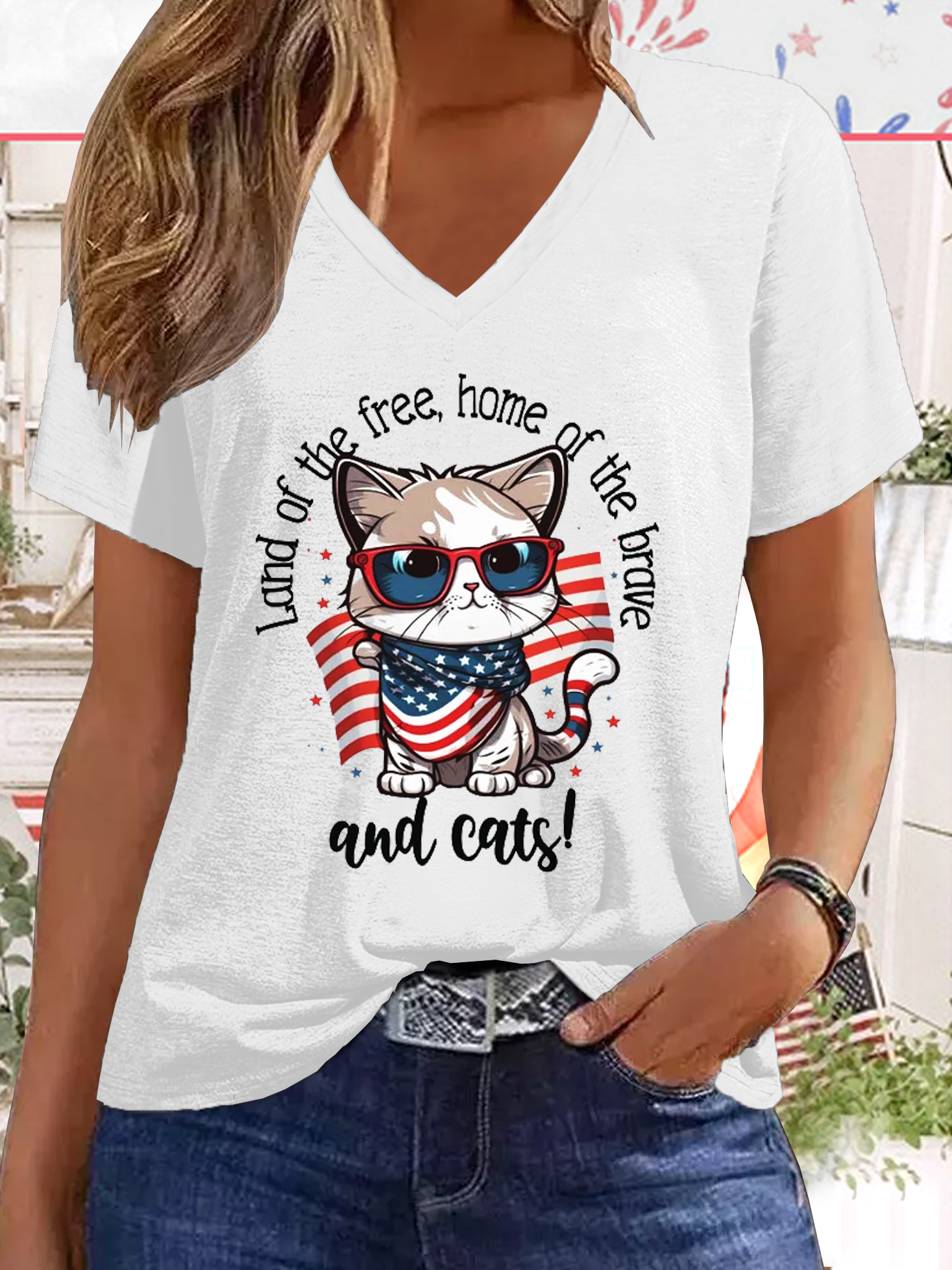 Women's Funny Word Cute American Cat 4th July Cat Lover Casual Cat T-Shirt