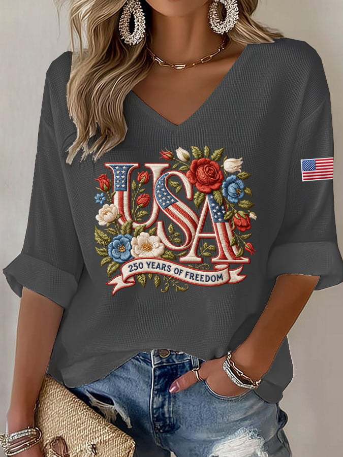 Women's 250 Years Of Freedom Print V Neck Top