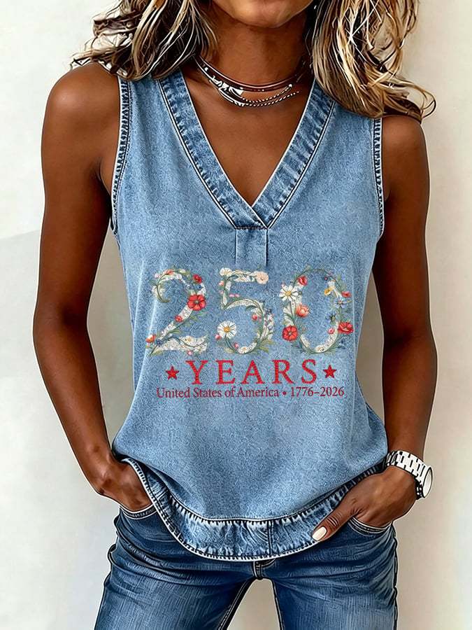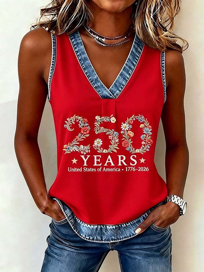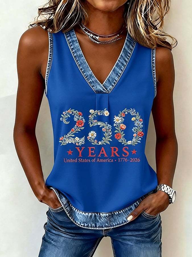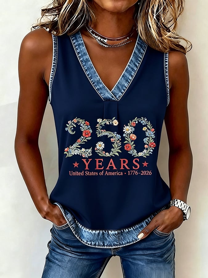 Women's 250th Anniversary Freedom Flower Art Print Casual V-Neck Vest
