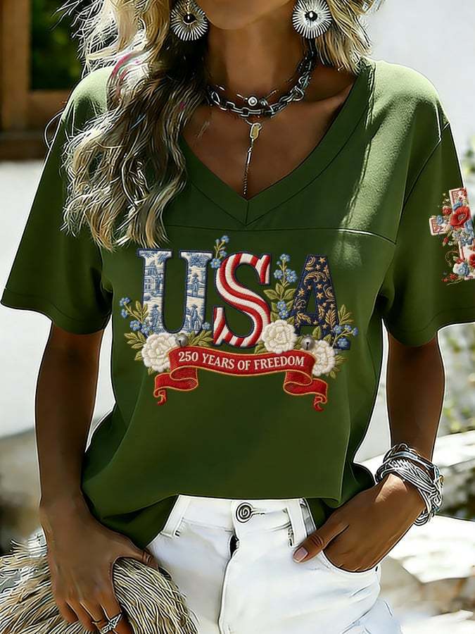 Women's 250th Anniversary Print V-Neck Top