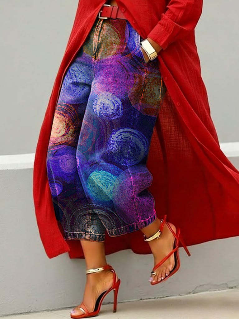 Women's Abstract Art Casual Jeans