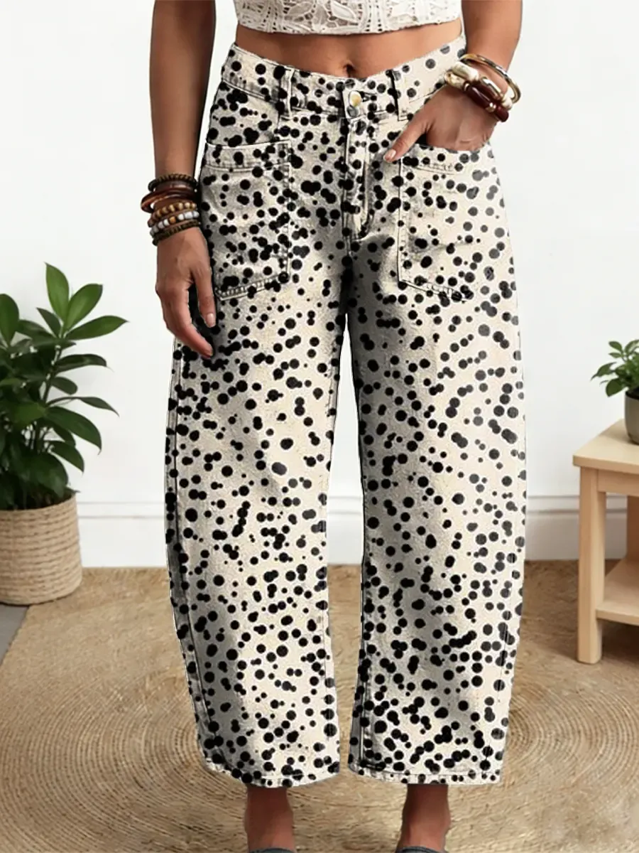 Women's Abstract Dot Pattern Art Print Casual Cotton Denim Pants