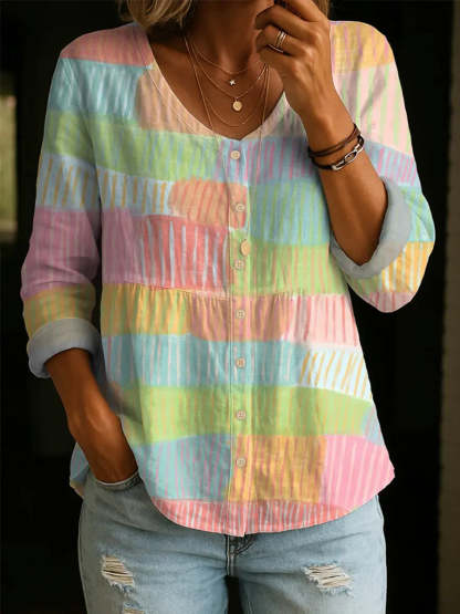 Women's Abstract Pattern Art Print Casual Cotton Shirt