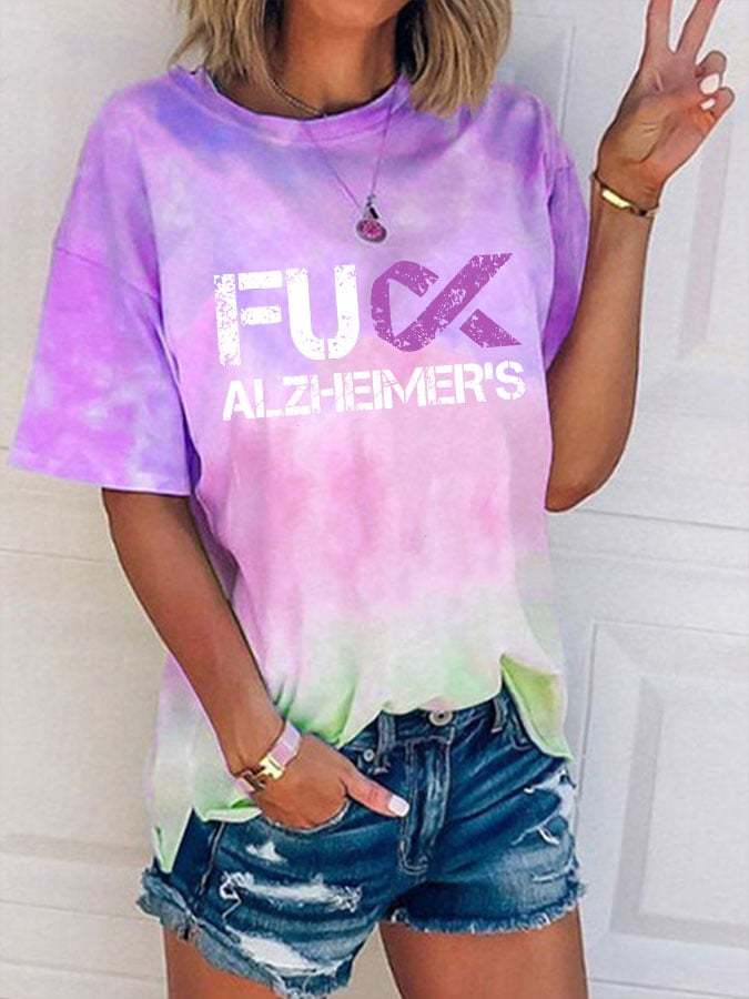 Women's Alzheimer's Awareness Funny Printed Crew Neck T-Shirt
