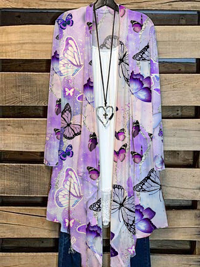 Women's Alzheimers Butterfly Print Casual Cardigan
