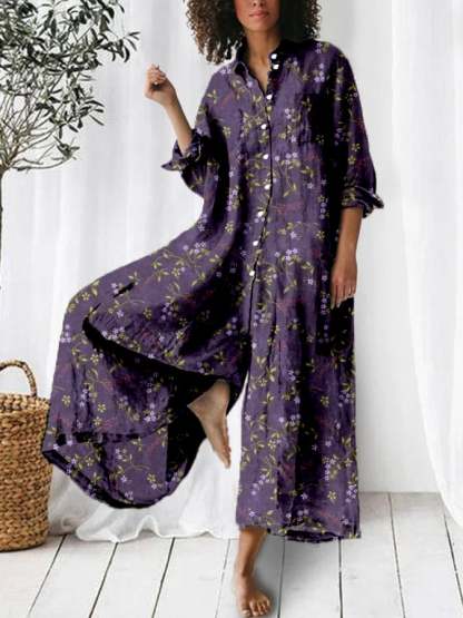 Women's Alzheimer's Floral Print Long Sleeve Multi-Pocket Shirt Jumpsuit