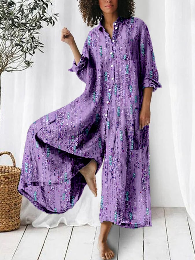 Women's Alzheimer's Floral Print Long Sleeve Multi-Pocket Shirt Jumpsuit