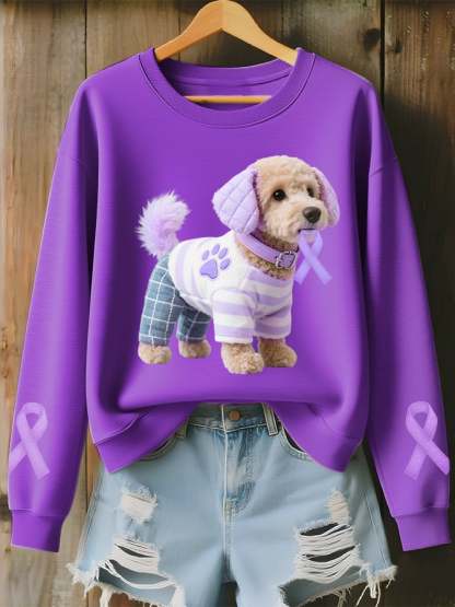 Women's Alzheimer's Purple Cute Dog Print Comfort Top