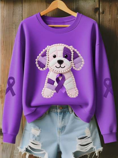 Women's Alzheimer's Purple Cute Dog Print Comfort Top