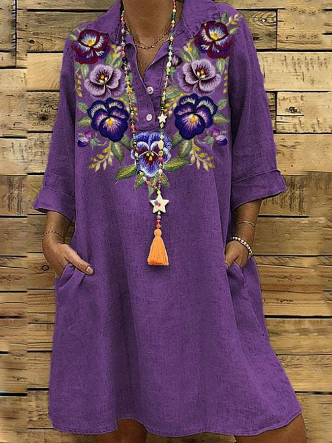 Women's Alzheimer's Purple Floral Print Shirt Dress