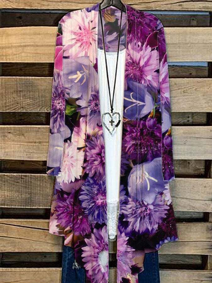 Women's Alzheimer's Purple Flowers Print Casual Cardigan