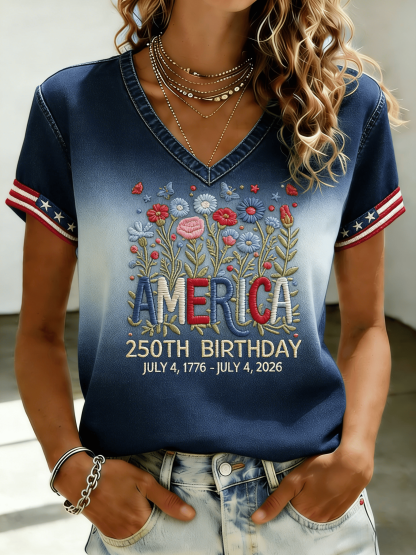 Women's America 250th Anniversary Patriotic V-Neck T-Shirt