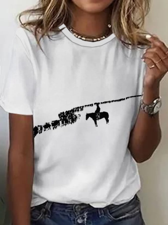 Women's Animal Horse Printed Round Neck Short Sleeve T-Shirt