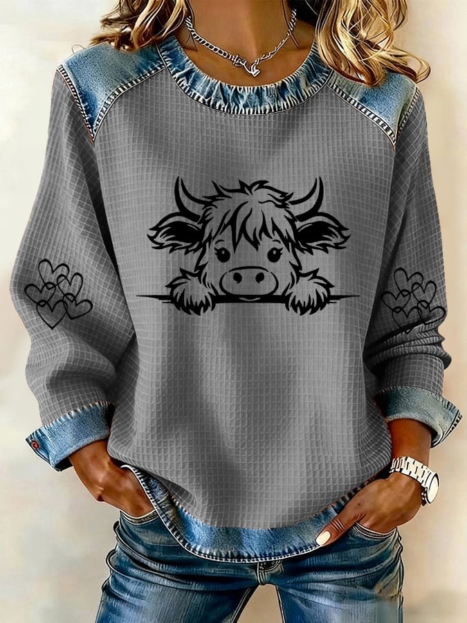 Women's Animal Print Highland Cow Sweatshirt