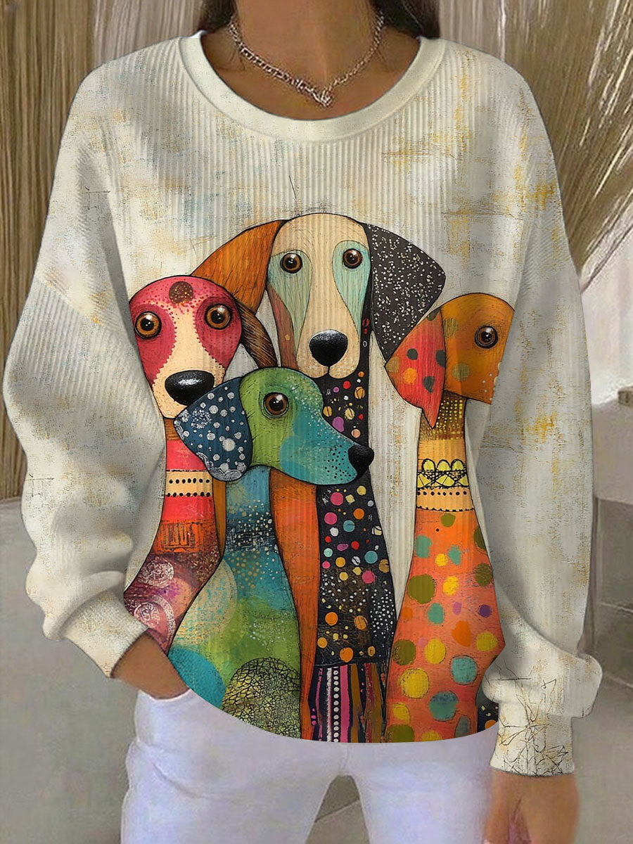 Women's Art Dog Print Casual Sweatshirt
