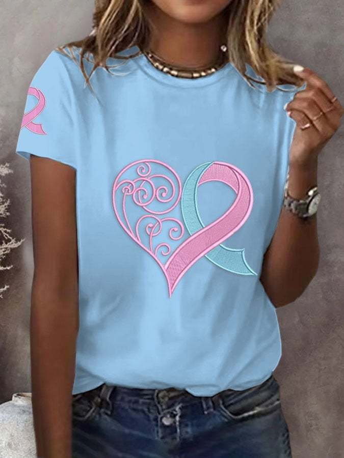 Women's Breast Cancer Awareness Love Pink Ribbon Print Casual T-Shirt