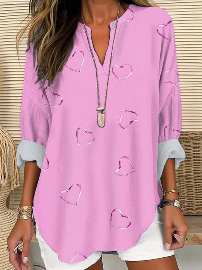 Women's Breast Cancer Awareness Print Casual Long Sleeve V-Neck Shirtt